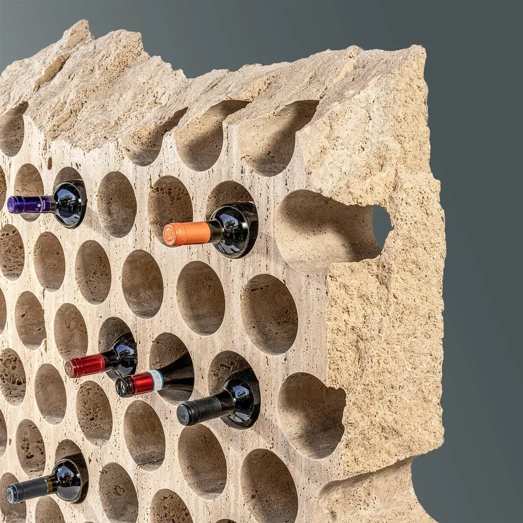 A masterpiece of Italian craftsmanship, this wine rack is carved from a single block of travertine and feature outstanding live edge details that recall the process of excavation of the stone from the mountain.Custom made on request, the wine rack can be executed in different geometries and is available in a wide range of natural stones to fit specific project conditions.100% Crafted in Italy