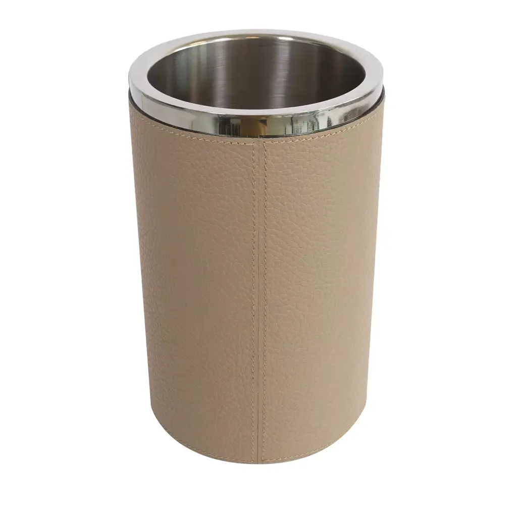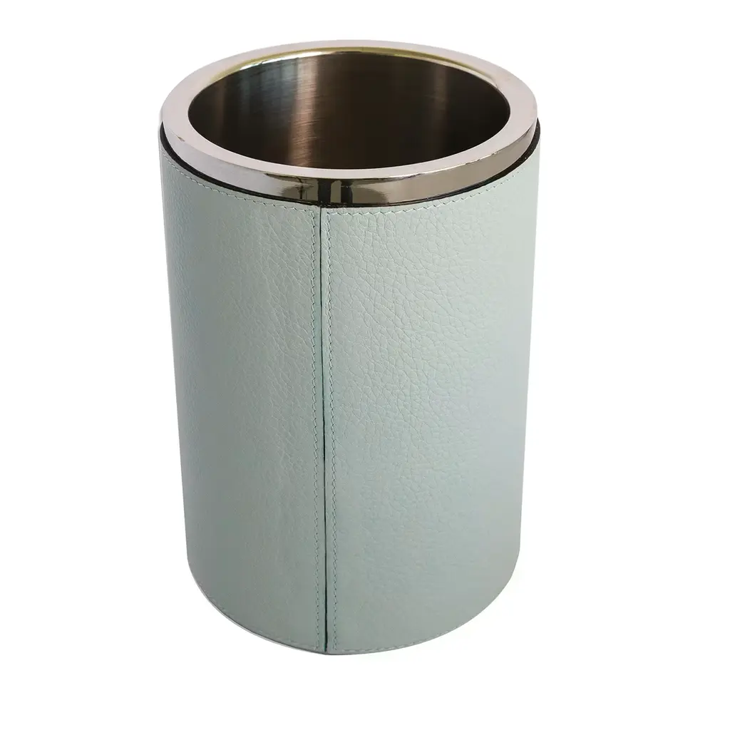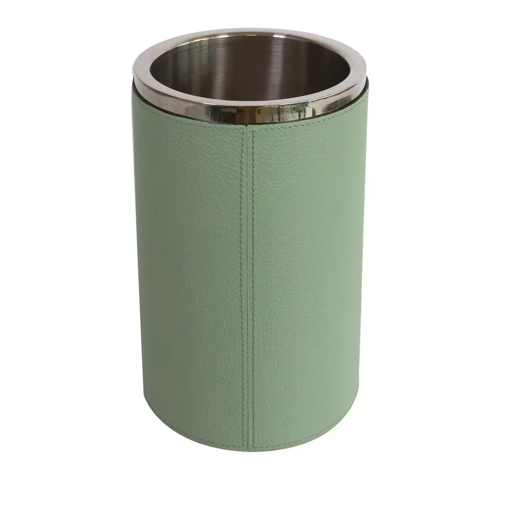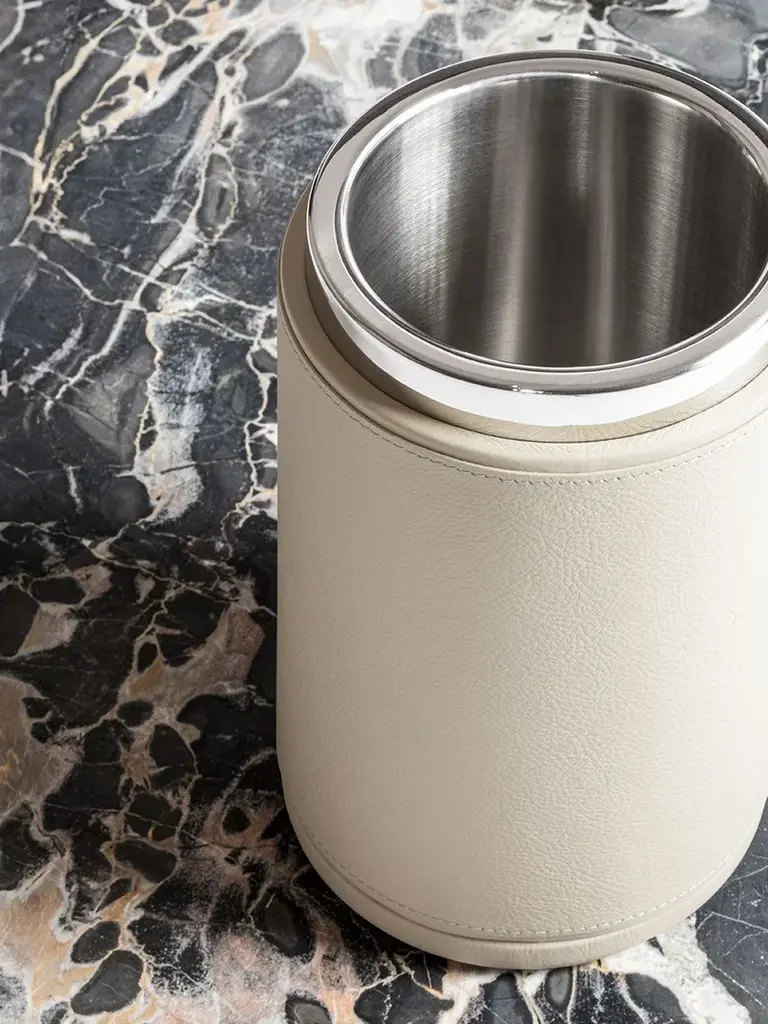 The bottle cooler, made from double-walled steel, is designed to keep wine or other types of bottles cool. Designed by Giobagnara for Poltrona Frau, it is decorated with a sophisticated Pelle Frau® leather band covering its sides. It is available in several colors.The Tableware Collection, created in cobranding with Giobagnara, is a family of coordinated dining table accessories, designed to add a sophisticated and precious touch to even the simplest dinner party. The collection offers a wide range of elegant and practical elements to enrich the social gathering, all upholstered in Pelle Frau® leather and meticulously handcrafted down to the finest of details. The Tableware Collection accessories evoke a warm and inviting atmosphere and a spirit of hospitality, reflecting thoughtfulness and consideration for others, enhancing the pleasure of every dining experience.