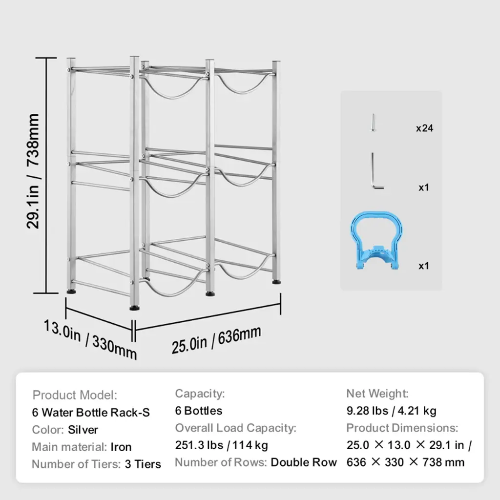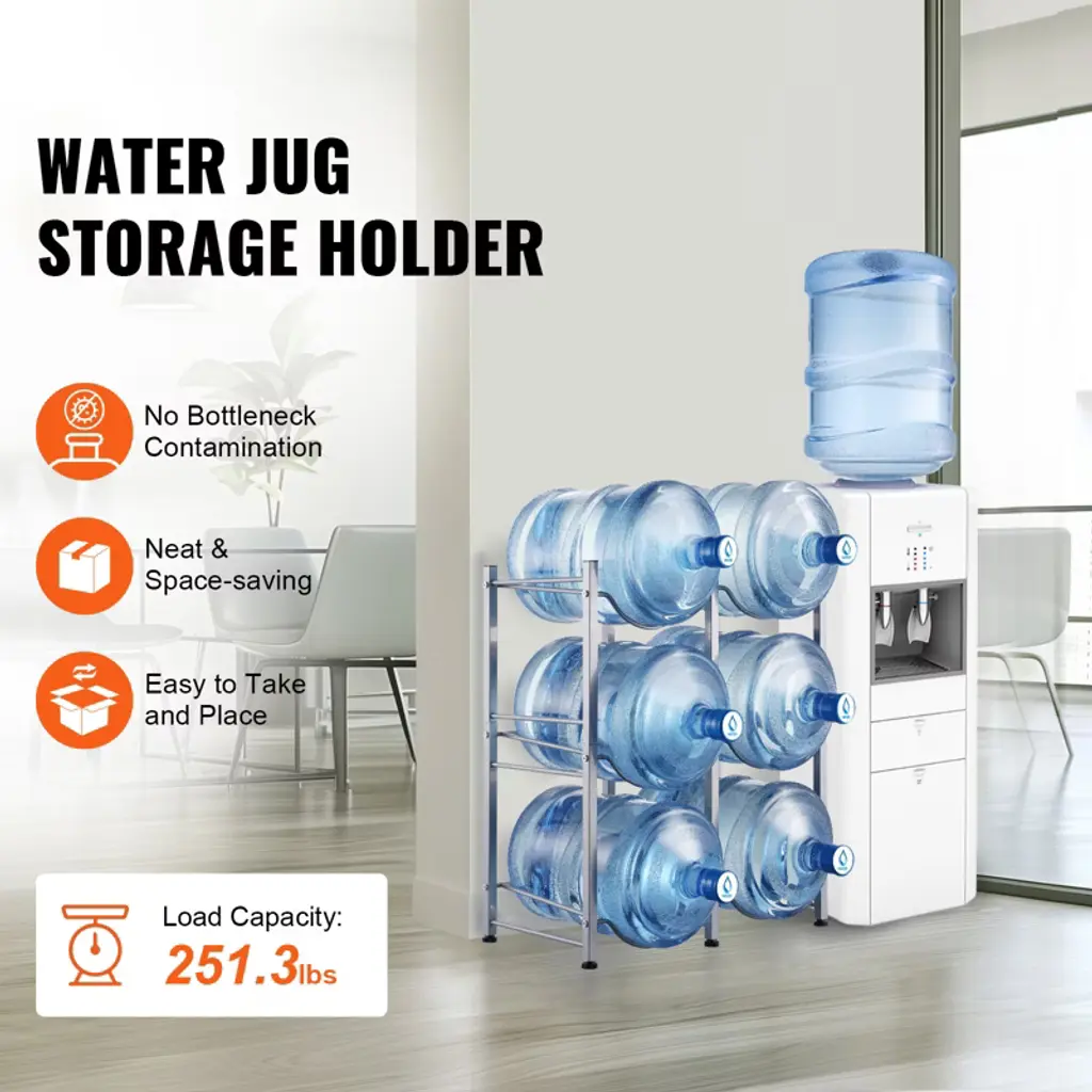 Vevor 3 Tiers Water Jug Holder, 5 Gallon Water Bottle Holder, Double Row Water Bottle Rack For 6 Bottles, Heavy Duty Water Jug Rack