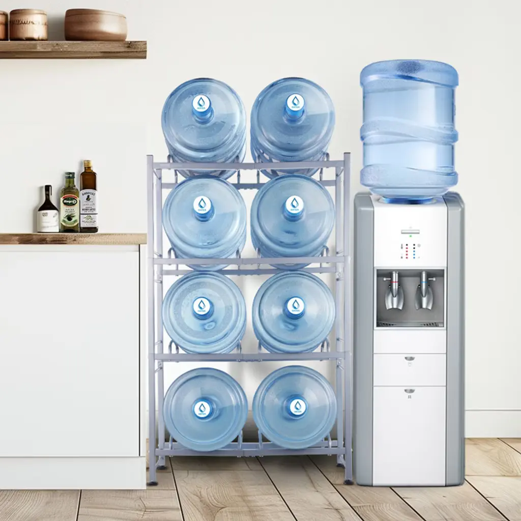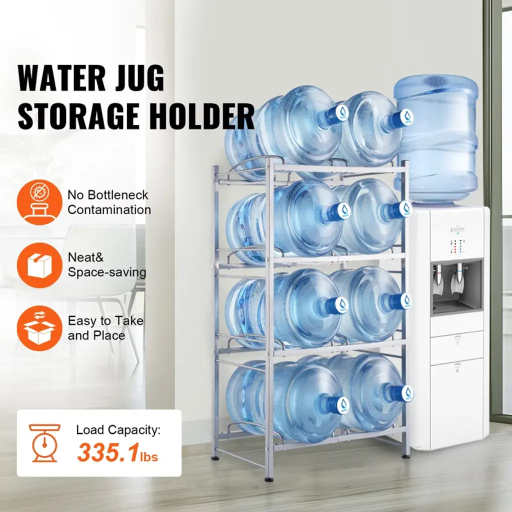 Vevor 4 Tiers Water Jug Holder, 5 Gallon Water Bottle Holder, Double Row Water Bottle Rack For 8 Bottles, Heavy Duty Water Jug Rack