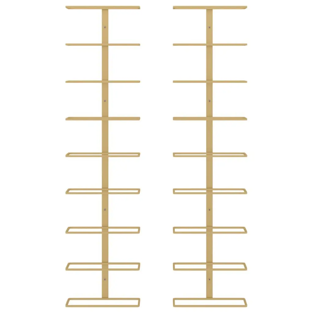 Vidaxl Wall-Mounted Wine Rack For 9 Bottles 2 Pcs Gold Iron