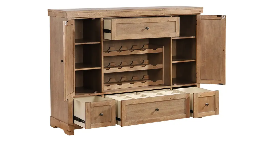 Store, age and display your wine in style with this wooden wine cabinet! It is perfect for wine aficionados.