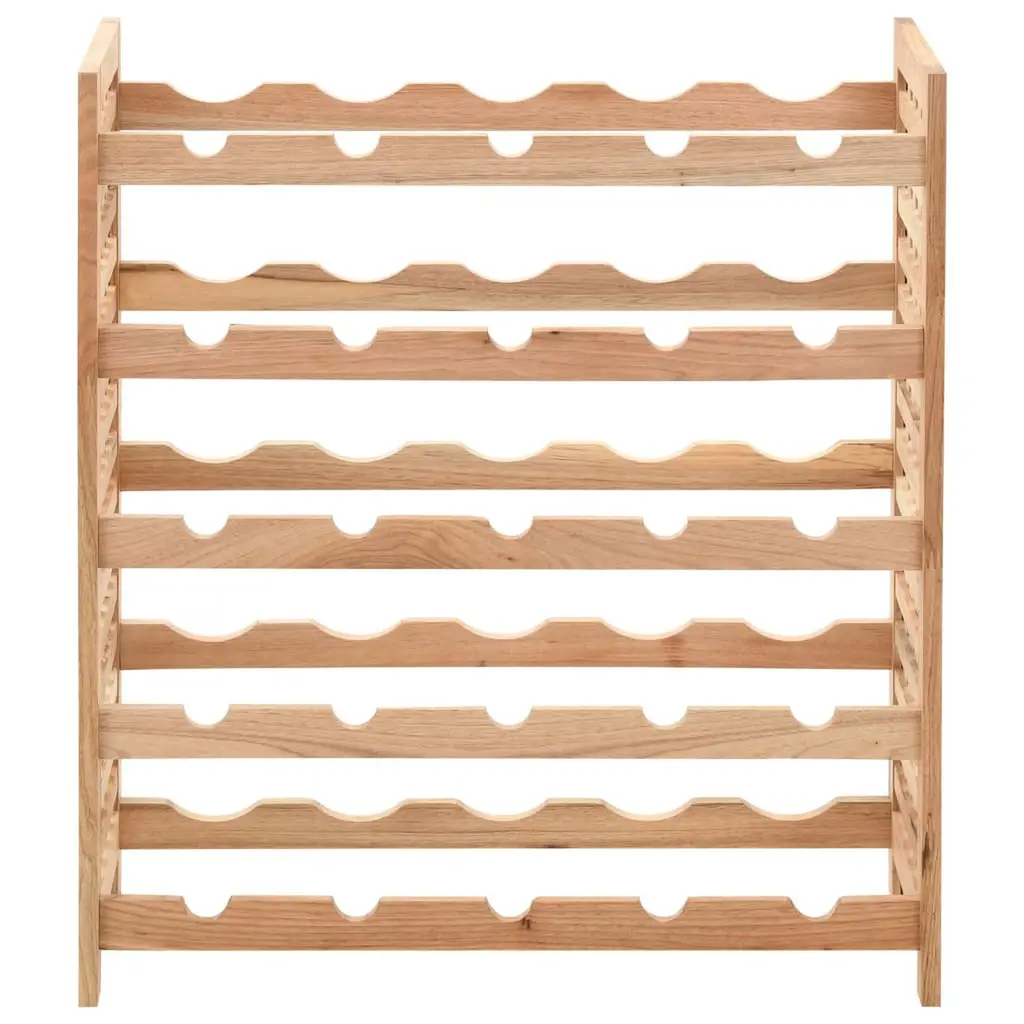 This 5-tier wine rack, made of solid walnut wood, will bring a touch of natural style to your home and provides an ideal storage solution for your wine bottles.The wooden wine storage rack has five shelves and can hold up to 25 wine bottles. Its side planks are formed by the beautiful frame that keeps the wine ventilated but also gives the wine rack an elegant look. The compact, stylish bottle holder will suit your interior decor perfectly.The wine rack is easy to assemble. Note: Wood is a natural product so colors may vary from batch to batch; delivery is random.