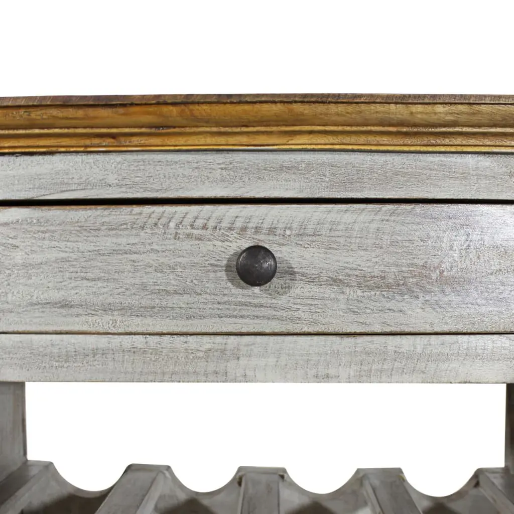 This antique-style wooden wine rack will be a timeless accessory for your home and perfect for wine collectors.Made of solid mahogany wood, this solid wood wine rack is exceedingly durable and sturdy. Mahogany is a tropical hardwood, standing out with its beauty, durability and color. Special craftsmanship has been used to give this item a vintage, warm and authentic look. Every piece of this furniture is unique, and slightly different from the next. Signs of wear and the craftsmanship of this fully-handmade wine cabinet give each piece a unique look and add to its spectacular vintage style.Every step of the process is carried out with the greatest care. Its classic design will make it an eye-catcher in any room.Important note: The colors may vary from piece to piece, making each of our wine racks unique. The delivery is random, ensuring the exclusivity and individuality of your product.