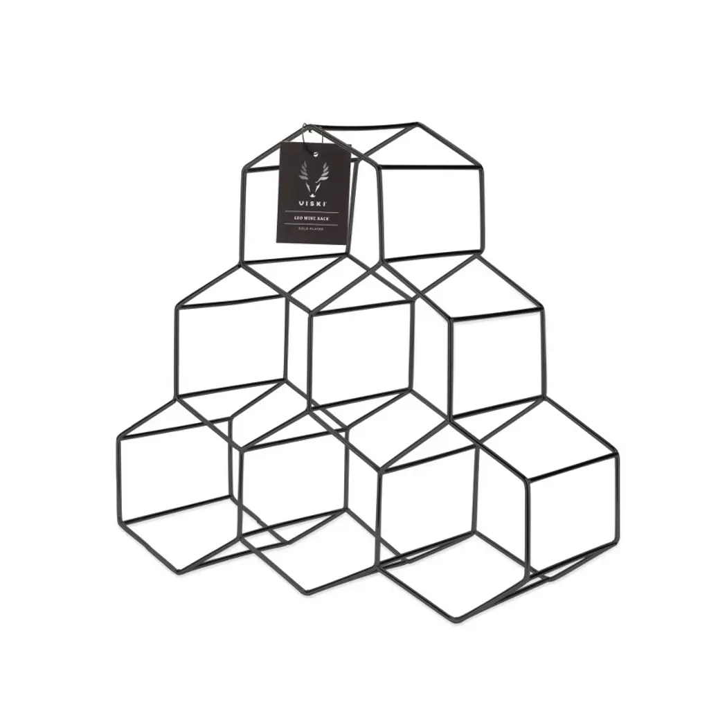 Viski Geo Set Of 1 Freestanding Racks & Cabinets, Holds 6 Bottles, Countertop Wine Rack, 14.25", Gunmetal Black