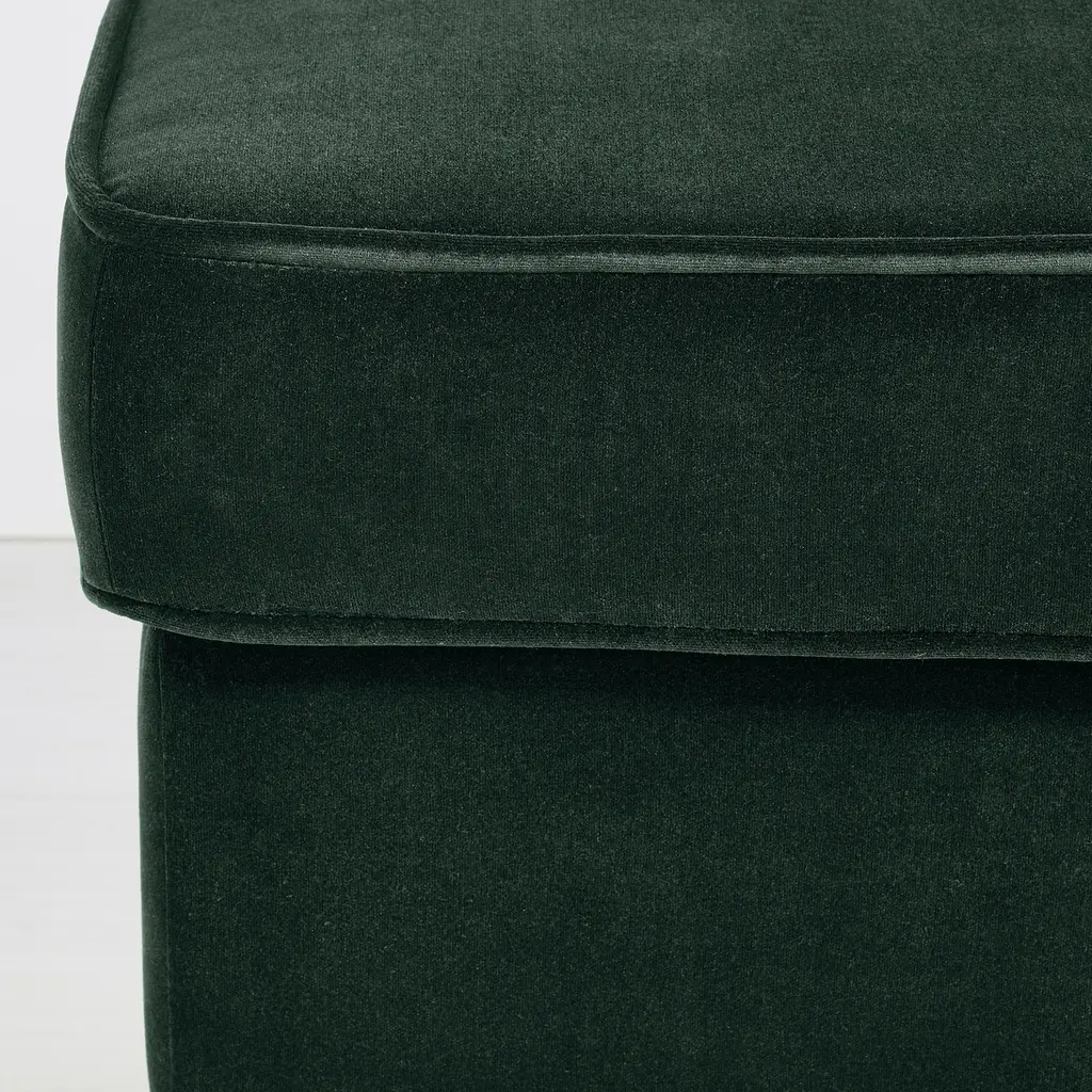 STRANDMON Armchair and ottoman - Djuparp dark green. This wing chair and footstool are the perfect combination when you want to stretch out, rest your feet and sit extra comfortably and relaxed. Round armrests, soft lines and an inviting upholstery give this wing chair a soft embracing feel.