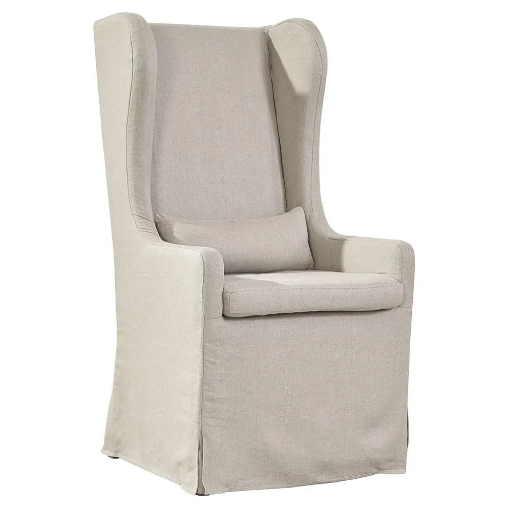 STRANDMON Armchair and ottoman - Kelinge beige. This wing chair and footstool are the perfect combination when you want to stretch out, rest your feet and sit extra comfortably and relaxed. Round armrests, soft lines and an inviting upholstery give this wing chair a soft embracing feel.