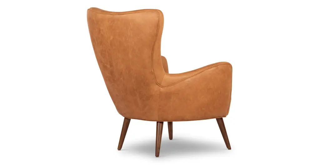 This modern wingback chair has something for everyone— a gorgeous high back, sophisticated wingback design, tapered wooden legs, supple leather, and a silhouette to die for. The Aida Lounge Chair is the epitome of bravura versatility. It would look beautiful in a traditional-styled home, and works just as well amongst ultra-modern décor. This pure-aniline dyed Italian tanned leather upholstery develops an exquisite patina over time— only adding to this accent chair’s splendor.