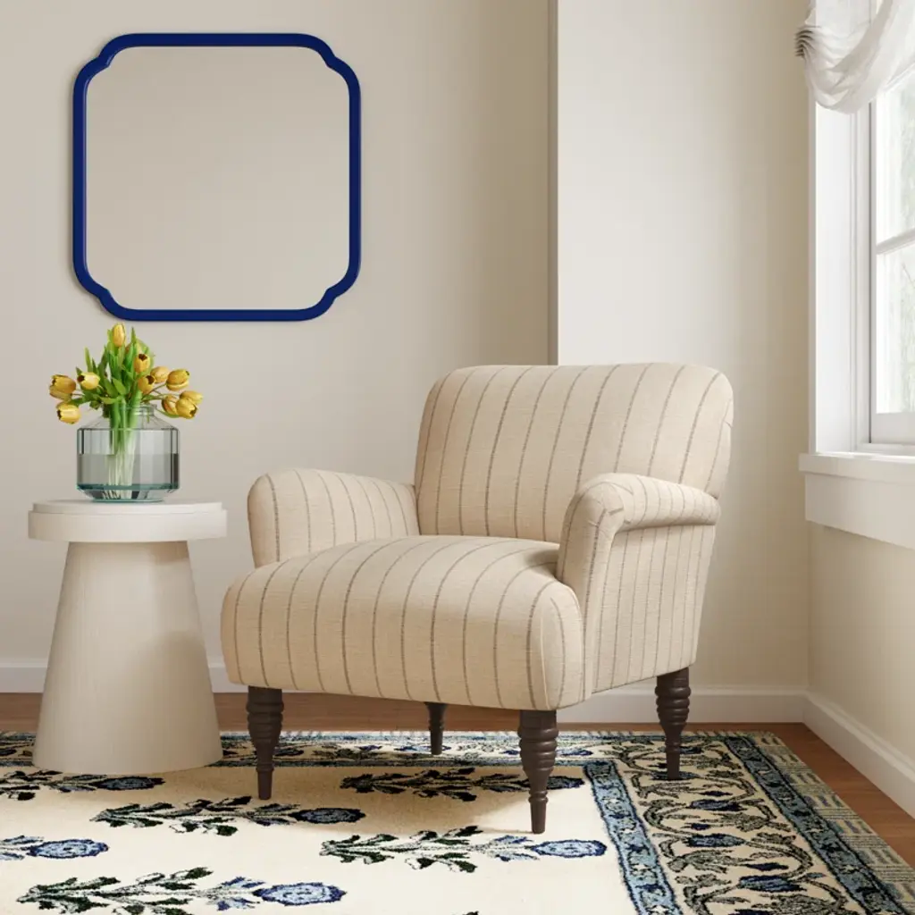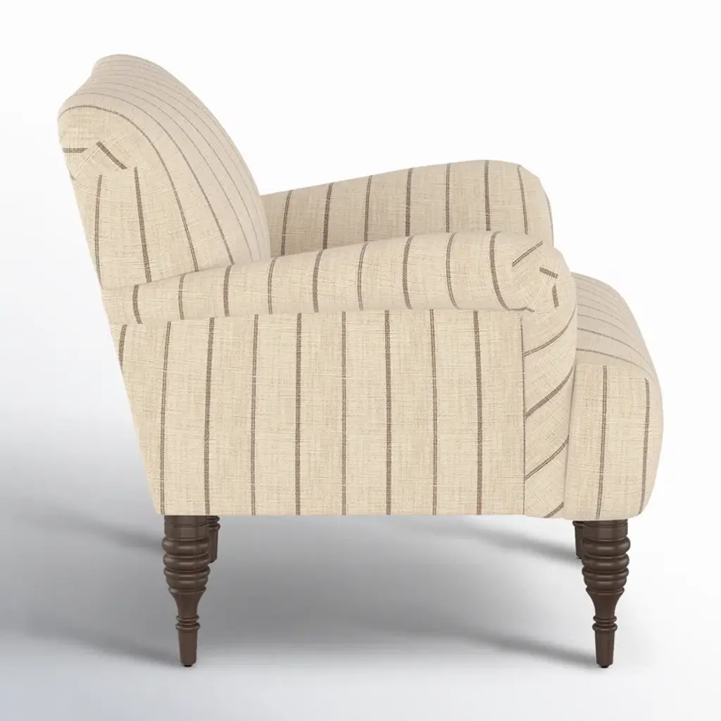 Classic and cozy, this upholstered armchair has a plush feel and a customizable look. Its frame is crafted from solid pine wood with a supportive back, winged arms, and classic turned legs. Choose from a wide variety of patterned upholstery fabrics to create the perfect accent chair for your space. Sink into the foam filling with a good book and a cup of tea.