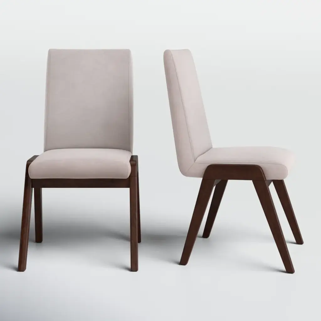 This 2-piece set of side chairs offers traditional style with a twist. Each is crafted from solid wood in a burnt birch finish and sits atop slightly tapered legs. Polyester-blend upholstery on the seats and backs offers just the right amount of coziness. These chairs boast a subtle wing-backed design for added support, and their light beige hue fits right in with a mix of home aesthetics. We love how these side chairs look paired with an on-trend cocktail table or in multiples around your dining table.