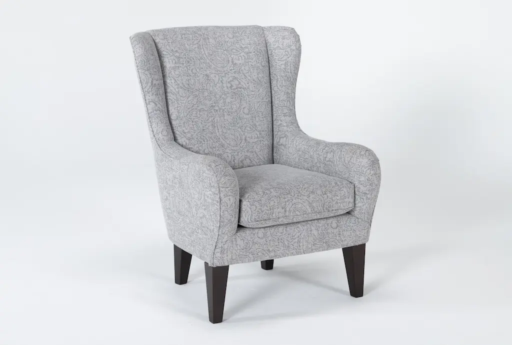 Anabelle Ii Grey Fabric Wingback Armchair With Espresso Finish | Made In The Usa | Paisley | Reading | Lounge