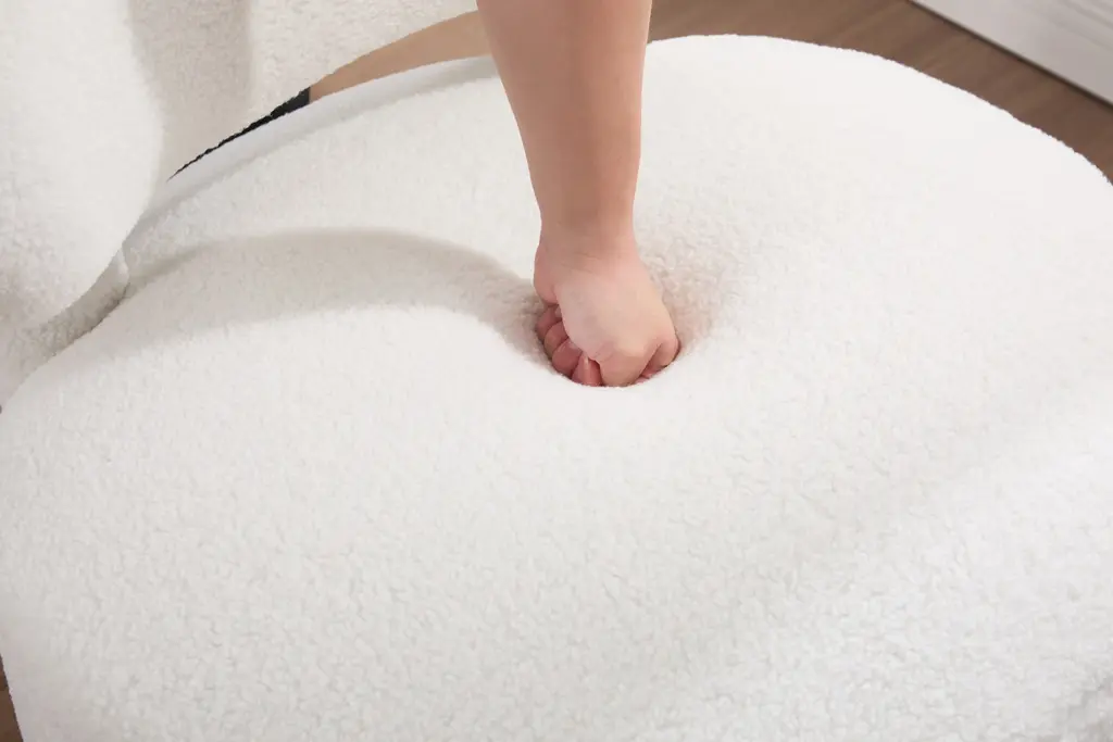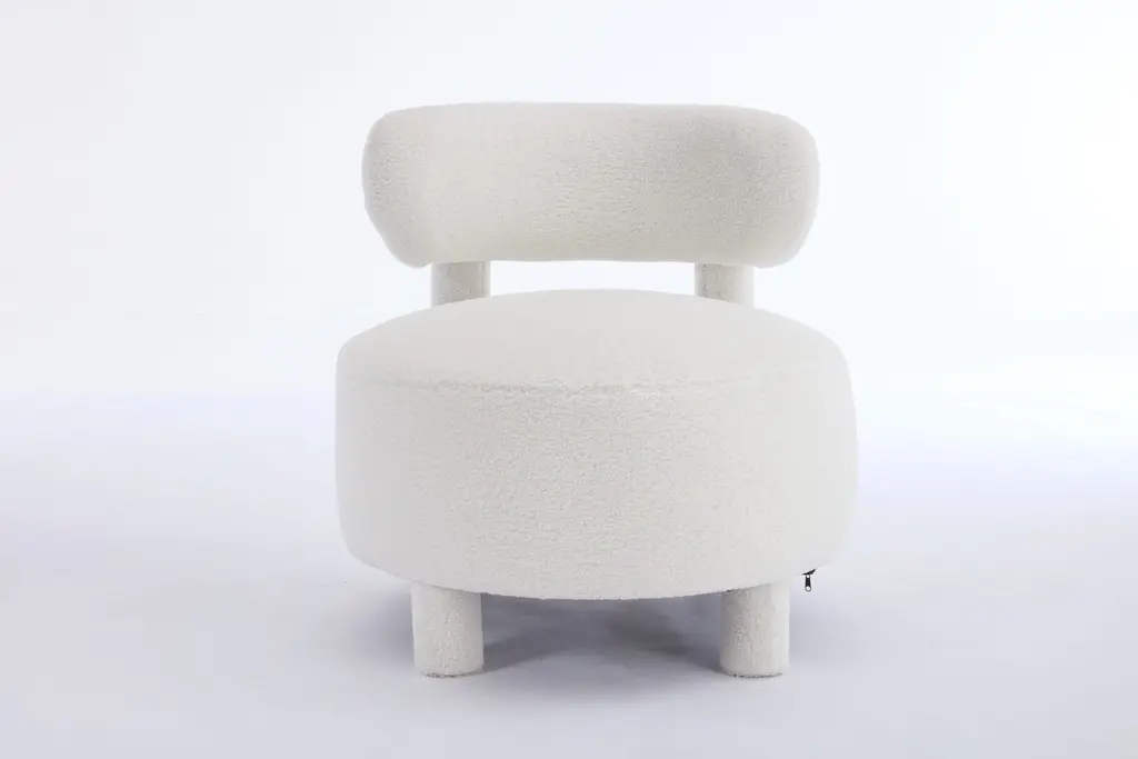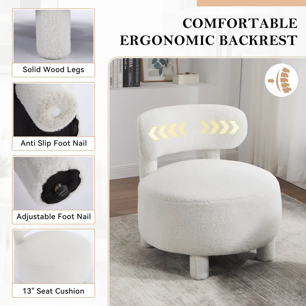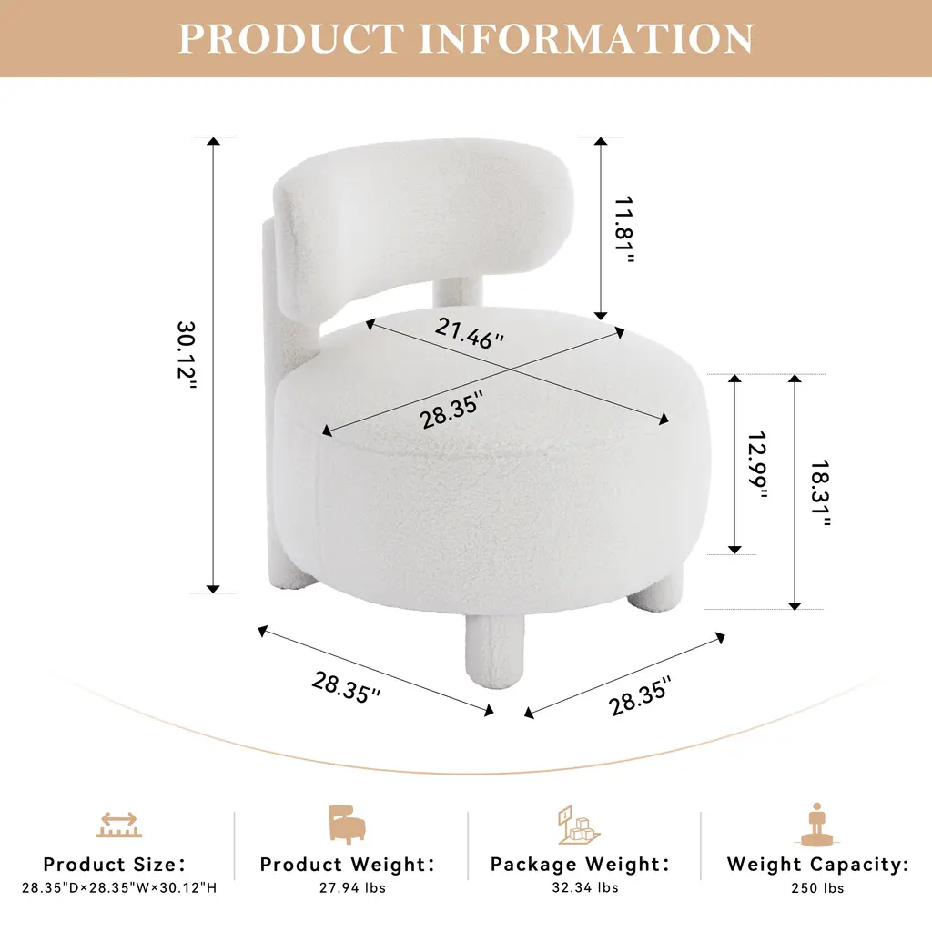 Generously Padded Comfort: Features an ultra-plush 13-inch thick seat cushion combined with a supportive foam filling and soft Teddy fabric upholstery for exceptional comfort during extended sitting. Sturdy & Stable Construction: Built with a durable solid wooden frame and legs (featuring anti-slip or adjustable foot nails), ensuring reliable support with a weight capacity of 250 lbs. Ergonomic Wingback Design: Offers an ergonomic curved wingback that provides excellent lumbar support and adds a touch of classic, refined aesthetic to any room. Simple Setup & Maintenance: Designed for easy one-person assembly in approximately 30 minutes. Maintains its look effortlessly with simple spot cleaning using a soft, dry cloth. Versatile Indoor Placement: Perfectly sized (28.35"D x 28.35"W x 30.12"H) for use as a stylish and comfortable accent chair in the living room, bedroom, reading nook, vanity area, or other indoor spaces.