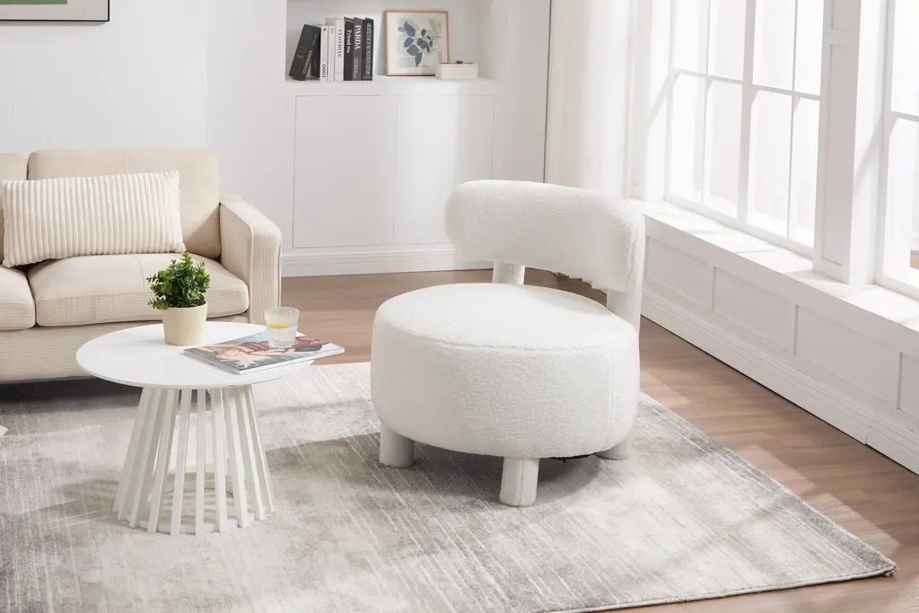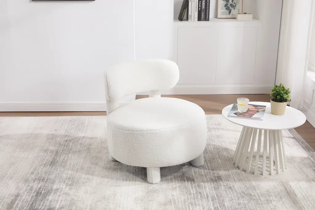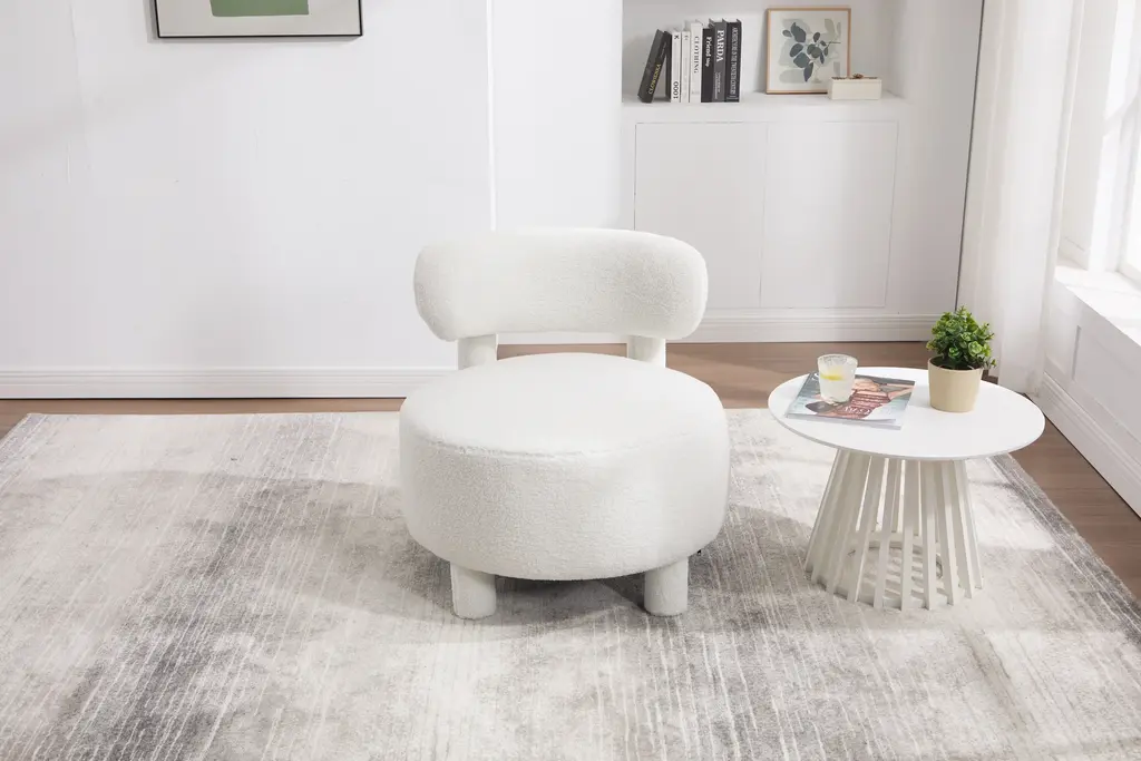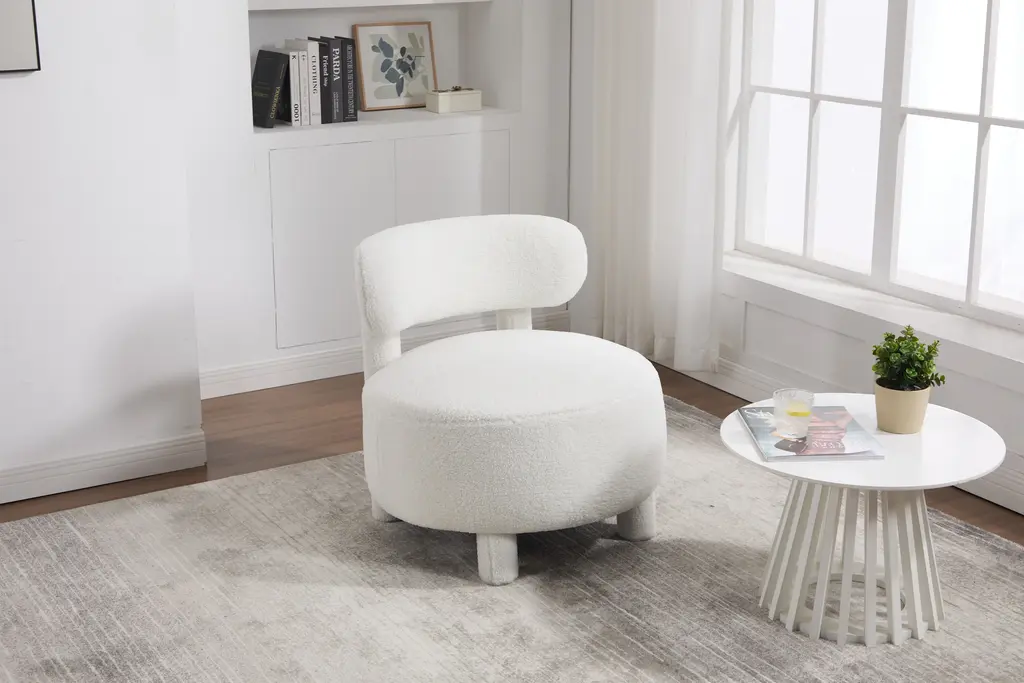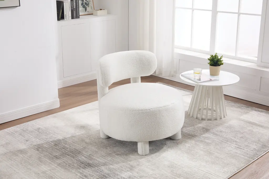 Generously Padded Comfort: Features an ultra-plush 13-inch thick seat cushion combined with a supportive foam filling and soft Teddy fabric upholstery for exceptional comfort during extended sitting. Sturdy & Stable Construction: Built with a durable solid wooden frame and legs (featuring anti-slip or adjustable foot nails), ensuring reliable support with a weight capacity of 250 lbs. Ergonomic Wingback Design: Offers an ergonomic curved wingback that provides excellent lumbar support and adds a touch of classic, refined aesthetic to any room. Simple Setup & Maintenance: Designed for easy one-person assembly in approximately 30 minutes. Maintains its look effortlessly with simple spot cleaning using a soft, dry cloth. Versatile Indoor Placement: Perfectly sized (28.35"D x 28.35"W x 30.12"H) for use as a stylish and comfortable accent chair in the living room, bedroom, reading nook, vanity area, or other indoor spaces.