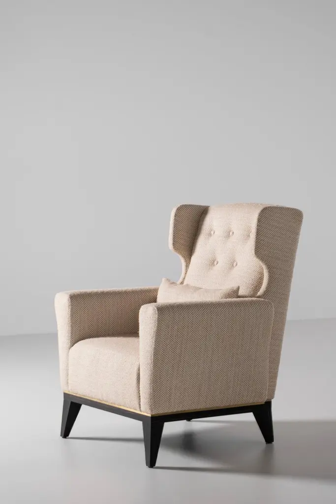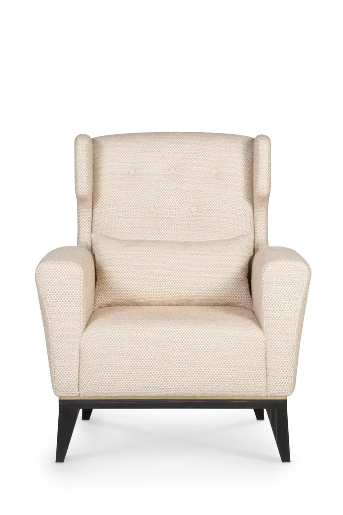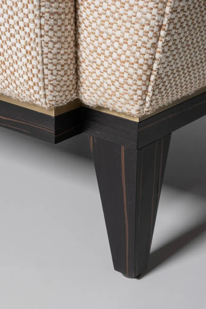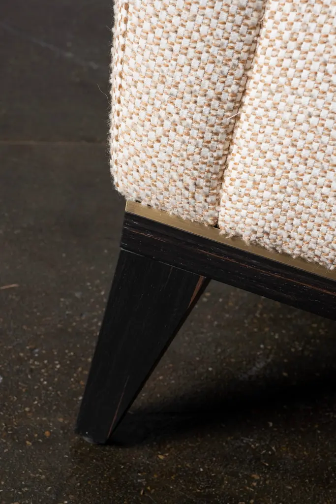 Art Deco Genebra Armchair, Modern Collection, Handcrafted in Portugal - Europe by GF Modern.The Genebra armchair is designed to give your living room a sophisticated vintage look.Since 2014, Greenapple has been designing furniture, lighting and heritage objects with inspiration in the beginning of the 20th century.Saving from oblivion one of Design's Golden Eras by the desire to sparkle interest in the Collectors community in pieces that draw inspiration in known designers who have now become classics: Eileen Gray, Jean-Michel Frank and Adolphe Chanaux, Pierre Chareau, Michel Dufet, Mariano Fortuny, Gio Ponti and so many others who have lead the way…Designed drawing inspiration in one of the golden ages of design, the 1930's, this is one of Greenapple's most iconic armchairs.Upholstered in cream cotton-wool fabric from Filippo Uecher and inlaid with antique-brass with matte details, it creates the right ambience for warm conversations.The beautiful frame and legs in matte ebony veneer harmonize perfectly with the fabric and brass details. This piece reveals the meticulous craftsmanship behind its making.The Genebra armchairs can be customized in terms of dimensions, materials and finishes. Genebra Armchair Material CodesWD159 Macassar Ebony, Open-pore, Varnished, Natural Brown-Black Ebony, MatteME032 Brass, Brushed, Burnished, Varnished, Antique-Brass, MatteM105640 Cotton-wool blend, CreamHandcrafted in Portugal - Europe by GreenappleUnique by design, Crafted by peopleGreenapple transforms contemporary spaces into exclusive narratives of design and craftsmanship. From custom-made furniture to bespoke interiors, each creation is a timeless work of art, shaped by master artisans who honor centuries-old techniques.Founded in 2005 by Sérgio Rebola and Rute Martins, Greenapple has earned global recognition among high-end clientele and leading design firms. While Rute designs each unique piece, Sérgio ensures uncompromising quality from design to production and from production to your home. We provide a seamless experience, offering short production lead times, worldwide delivery within 7 to 10 days, and white-glove service upon request.For U.S. clients, we can handle all customs clearance, cover duties, and offer white-glove service as well upon request.Armchair, Accent Chair, Easy Chair, Wing Chair, Club Chair