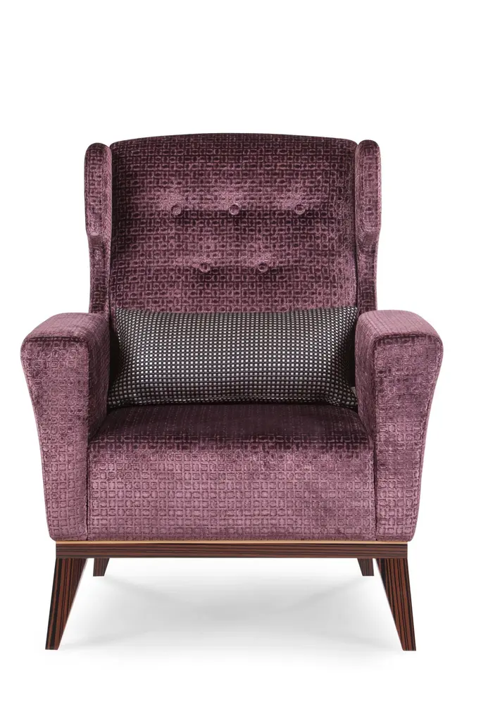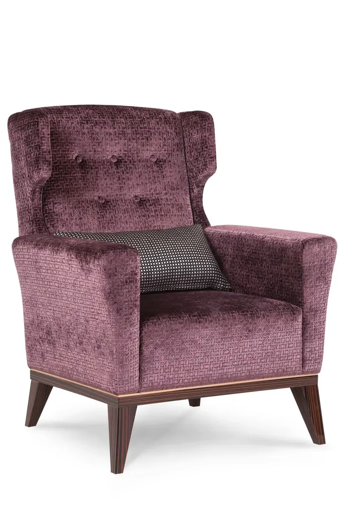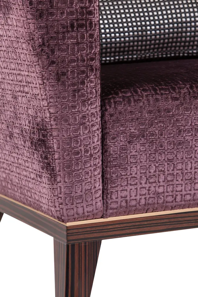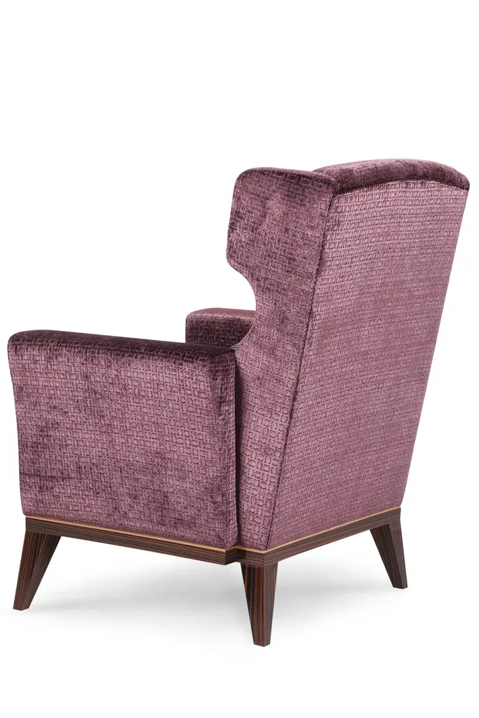 Art Deco Genebra Armchair, Modern Collection, Handcrafted in Portugal - Europe by GF Modern.The Genebra armchair is designed to give your living room a sophisticated vintage look.Since 2014, Greenapple has been designing furniture, lighting and heritage objects with inspiration in the beginning of the 20th century.Saving from oblivion one of Design's Golden Eras by the desire to sparkle interest in the Collectors community in pieces that draw inspiration in known designers who have now become classics: Eileen Gray, Jean-Michel Frank and Adolphe Chanaux, Pierre Chareau, Michel Dufet, Mariano Fortuny, Gio Ponti and so many others who have lead the way…Designed drawing inspiration in one of the golden ages of design, the 1930's, this is one of Greenapple's most iconic armchairs.Upholstered in aubergine velvet and inlaid with gold-coloured bronze powder details, it creates the right ambience for warm conversations.The beautiful frame and legs in glossy ebony veneer harmonize perfectly with the aubergine velvet and gold details. This piece reveals the meticulous craftsmanship behind its making.The Genebra armchairs can be customized in terms of dimensions, materials and finishes. Genebra Armchair Material CodesWD056 Ebony, Closed-pore, Varnished, Natural Brown-Black Ebony, High-GlossFI026 Lacquered, Varnished, Gold, High-GlossM100626 Velvet, AubergineHandcrafted in Portugal - Europe by GreenappleUnique by design, Crafted by peopleGreenapple transforms contemporary spaces into exclusive narratives of design and craftsmanship. From custom-made furniture to bespoke interiors, each creation is a timeless work of art, shaped by master artisans who honor centuries-old techniques.Founded in 2005 by Sérgio Rebola and Rute Martins, Greenapple has earned global recognition among high-end clientele and leading design firms. While Rute designs each unique piece, Sérgio ensures uncompromising quality from design to production and from production to your home. We provide a seamless experience, offering short production lead times, worldwide delivery within 7 to 10 days, and white-glove service upon request.For U.S. clients, we can handle all customs clearance, cover duties, and offer white-glove service as well upon request.Armchair, Accent Chair, Easy Chair, Wing Chair, Club Chair