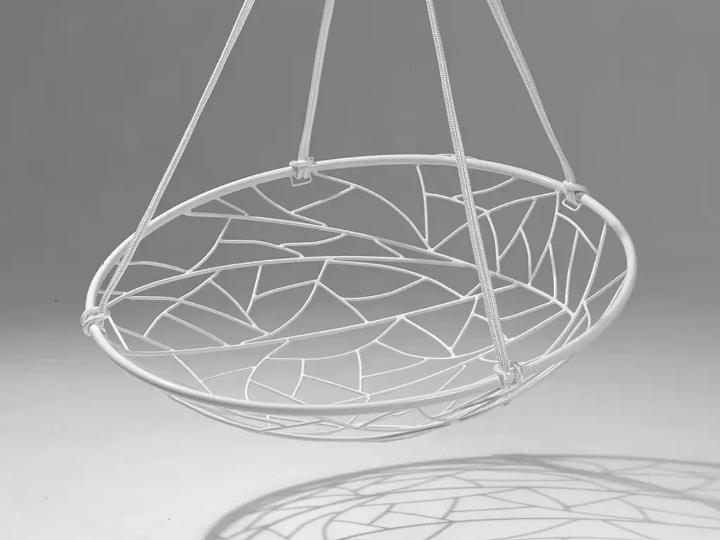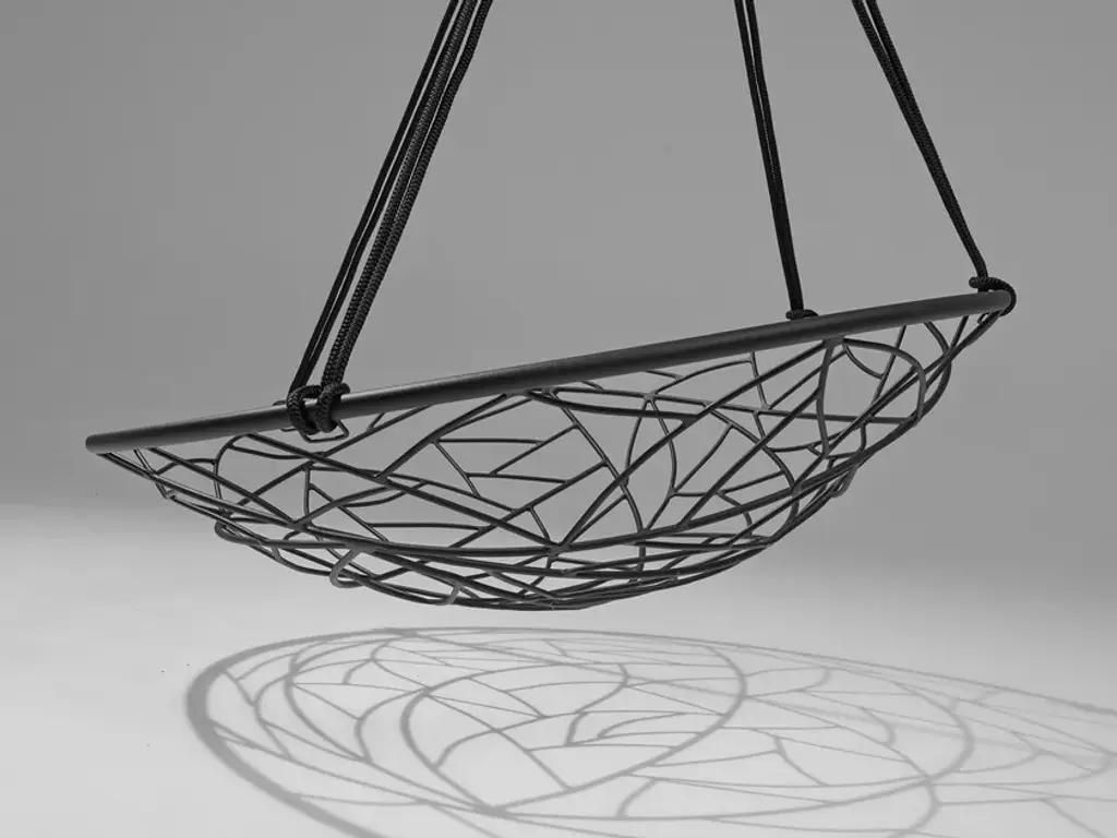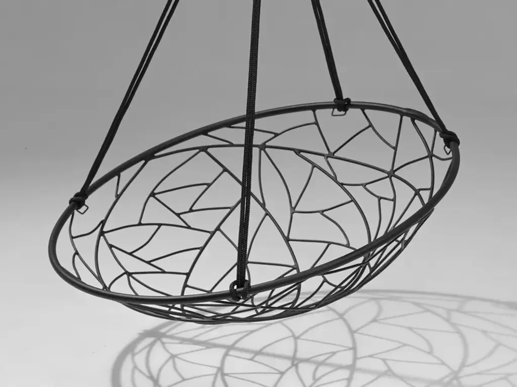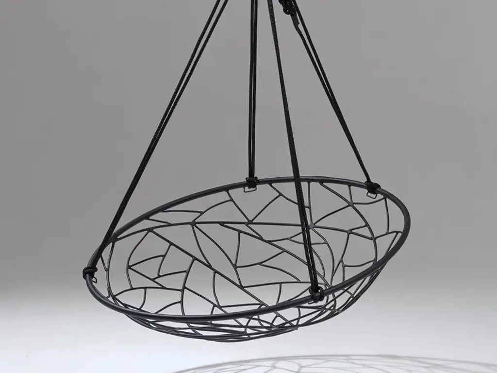 The BASKET hanging chair swing seat's round shape creates a cozy feel. It is simple and striking in its visual appeal. The twig pattern detail is reminiscent of tree branches that intersect, grasses that are intertwined, the veins in dragonfly wings, veins in leaves, cracked soil and natural textures. The chair has been designed to be very comfortable and relaxing. Ideal for ‘chilling’ in, reading a book or just hanging out.Each one is made by hand. The core frame is standard to ensure consistency in shape and comfort. Due to the variance of craftsmanship going into each chair, every piece has individualism and uniqueness in some of the pattern detailing. Stainless Steel recommended for humid, salty, high moisture, coastal regions – on request and at an additional charge. Hanging mechanisms are supplied in standard lengths, ready for installation.Available on request:- colour options- hanging options and stands- cushion options, sold separatelyVery Durable | Beautiful | Modern | Minimal | Contemporary and unique | Made By Hand | Indoor & Outdoor | Maximum Capacity 120 kgs / 265 lbs. | Powder Coated | Made from Rust Treated Mild Steel | Made in South Africa Dimensions: L (arm to arm) x W (front to back) x H (top to bottom) 104 cm x 30 cm x 104 cm | Inches approx. 40.9" x 11.8'' x 40.9" Weight: 11kg / 25 lbs1 Year Warranty-Products to be free from defects in material and workmanship for a period of one year from date of sale. Any product found to be defective within this time period may be returned to our factory, freight prepaid, with prior return authorization for repair or replacement.