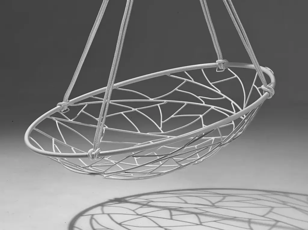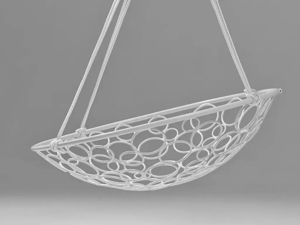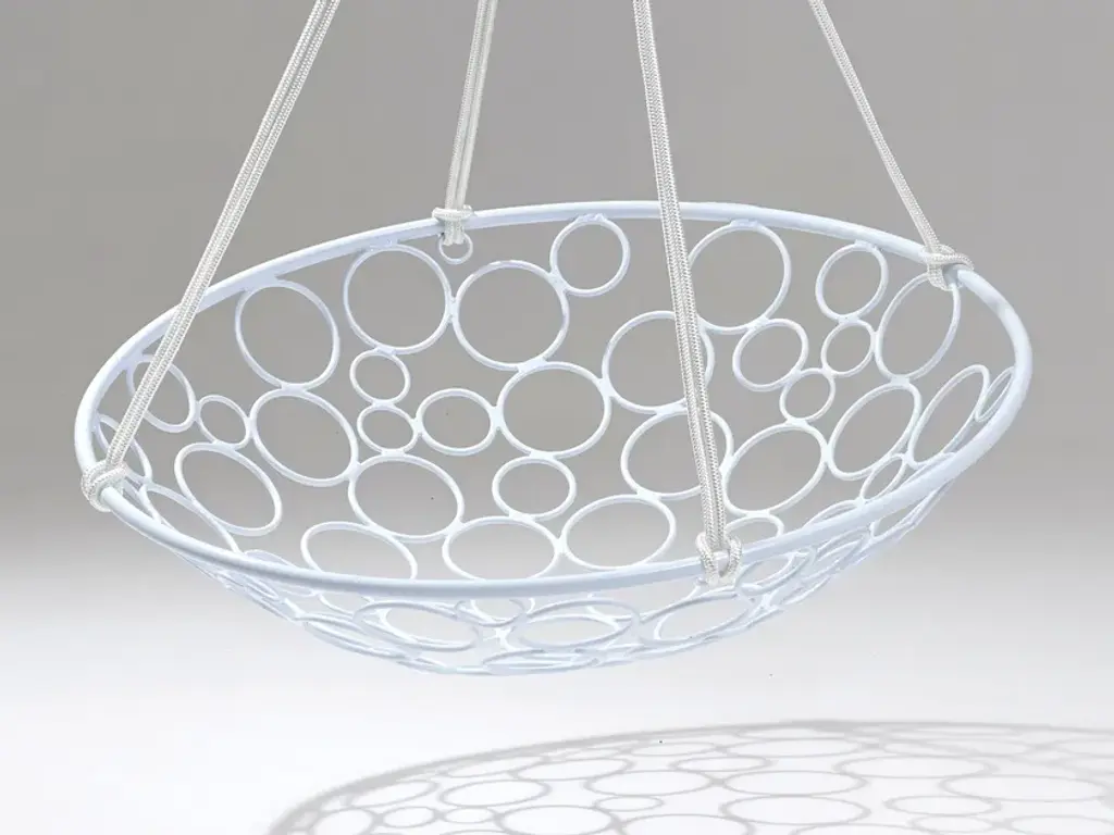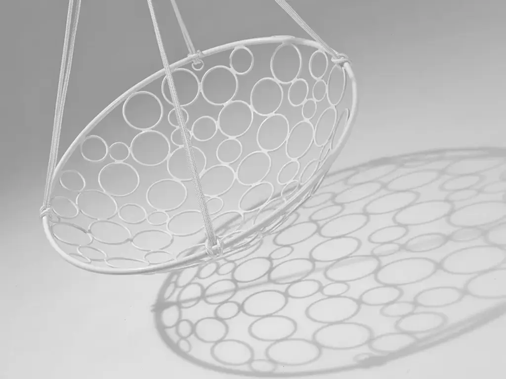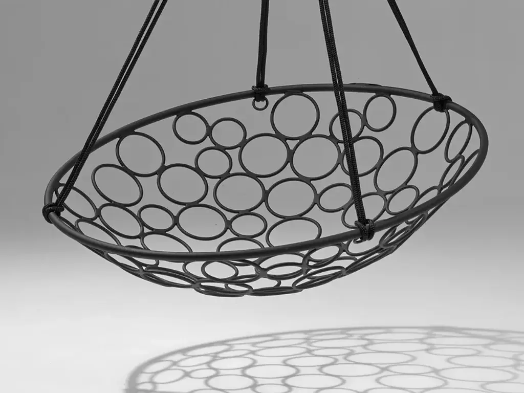 The BASKET hanging chair swing seat's round shape creates a cozy feel. It is simple and striking in its visual appeal. The twig pattern detail is reminiscent of tree branches that intersect, grasses that are intertwined, the veins in dragonfly wings, veins in leaves, cracked soil and natural textures. The chair has been designed to be very comfortable and relaxing. Ideal for ‘chilling’ in, reading a book or just hanging out.Each one is made by hand. The core frame is standard to ensure consistency in shape and comfort. Due to the variance of craftsmanship going into each chair, every piece has individualism and uniqueness in some of the pattern detailing. Stainless Steel recommended for humid, salty, high moisture, coastal regions – on request and at an additional charge. Hanging mechanisms are supplied in standard lengths, ready for installation.Available on request:- colour options- hanging options and stands- cushion options, sold separatelyVery Durable | Beautiful | Modern | Minimal | Contemporary and unique | Made By Hand | Indoor & Outdoor | Maximum Capacity 120 kgs / 265 lbs. | Powder Coated | Made from Rust Treated Mild Steel | Made in South Africa Dimensions: L (arm to arm) x W (front to back) x H (top to bottom) 104 cm x 30 cm x 104 cm | Inches approx. 40.9" x 11.8'' x 40.9" Weight: 11kg / 25 lbs1 Year Warranty-Products to be free from defects in material and workmanship for a period of one year from date of sale. Any product found to be defective within this time period may be returned to our factory, freight prepaid, with prior return authorization for repair or replacement.