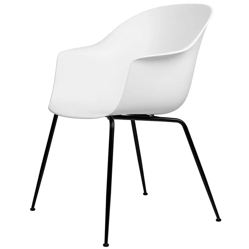 GUBI’s Bat chair got the name and inspiration for its graceful shape from the lines of a bat’s wingspan. Designed by the Danish-Italian duo GamFratesi, the Bat chair combines an inviting, upholstered shell with slim, diagonal metal legs. Bat’s minimalist yet dynamic appearance, situated somewhere between classic and unexpected, is equally well suited for around the dining table as it is in a conference room.