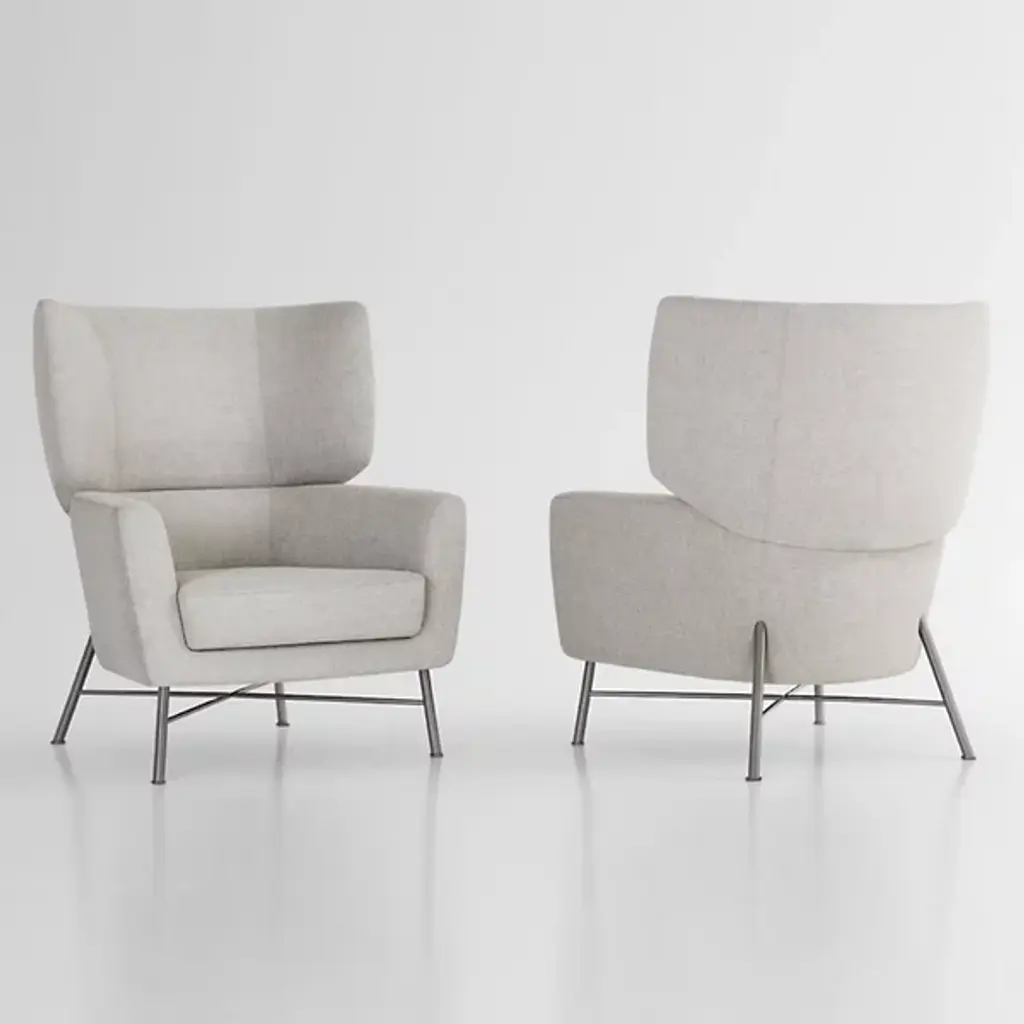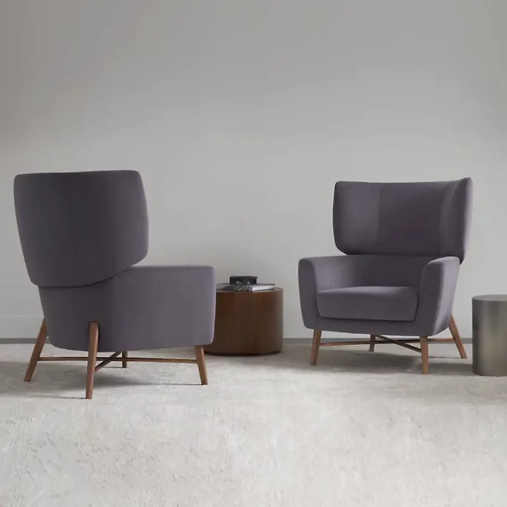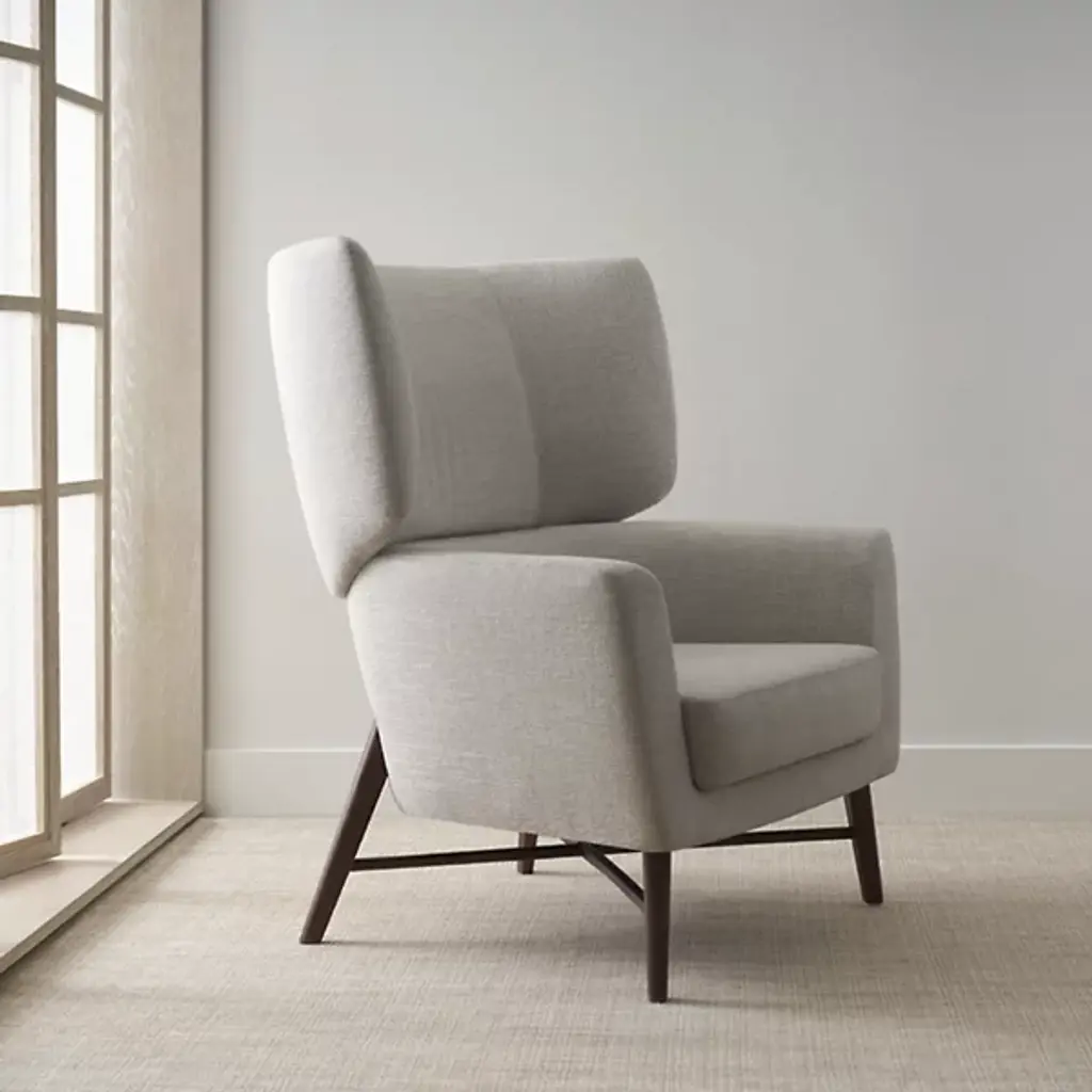 The Belmont Wingback Lounge Chair from Bernhardt Design offers a fresh, modern take on the classic wingback. Designed by Terry Crews, its graceful shawl-style back creates visual interest from every angle, making it perfect for both open spaces and cozy corners. Layered foam of varying densities ensures lasting comfort, while the tall backrest invites you to relax with ease. A cross stretcher base provides balance and stability, beautifully anchoring the generous silhouette for a look that’s both stylish and inviting.