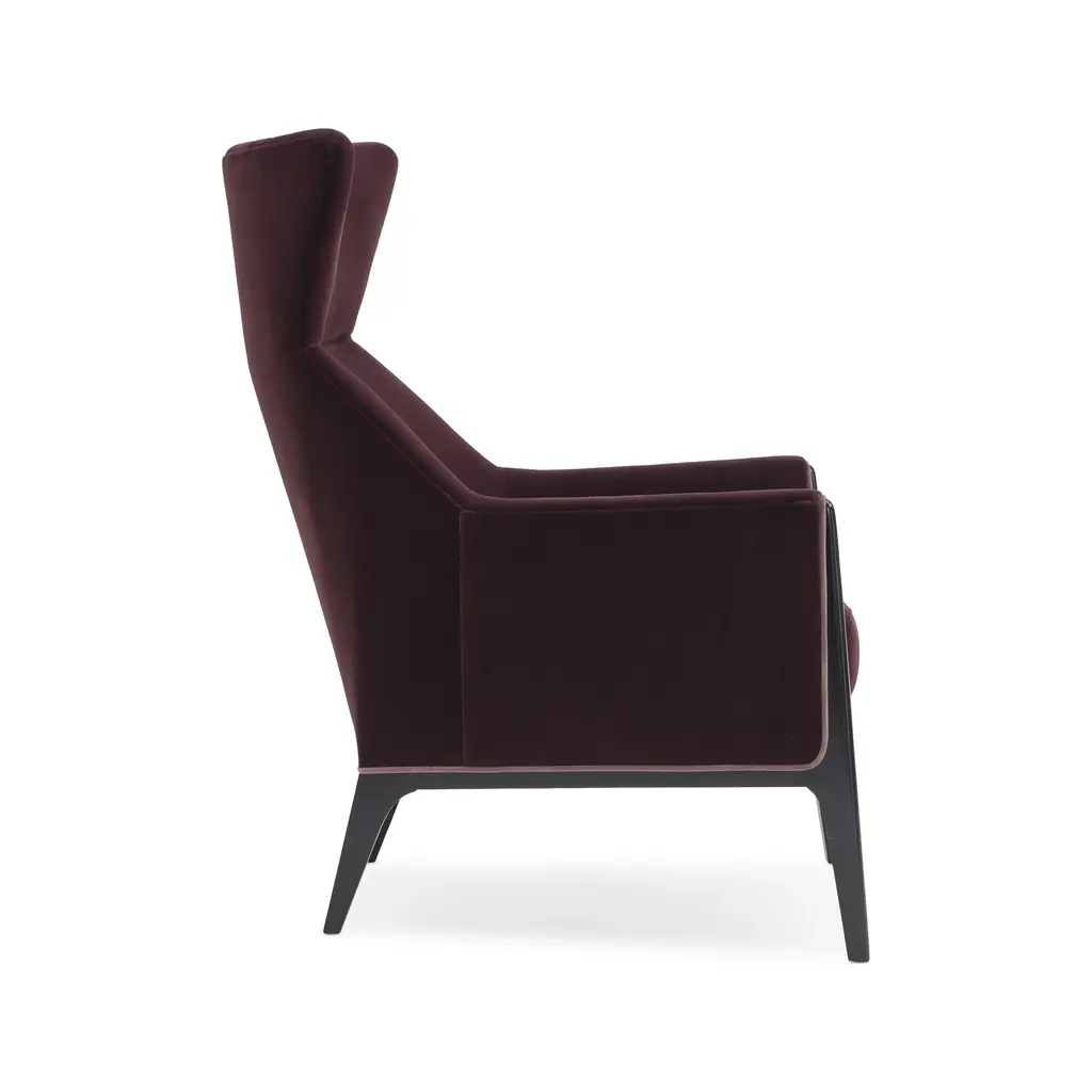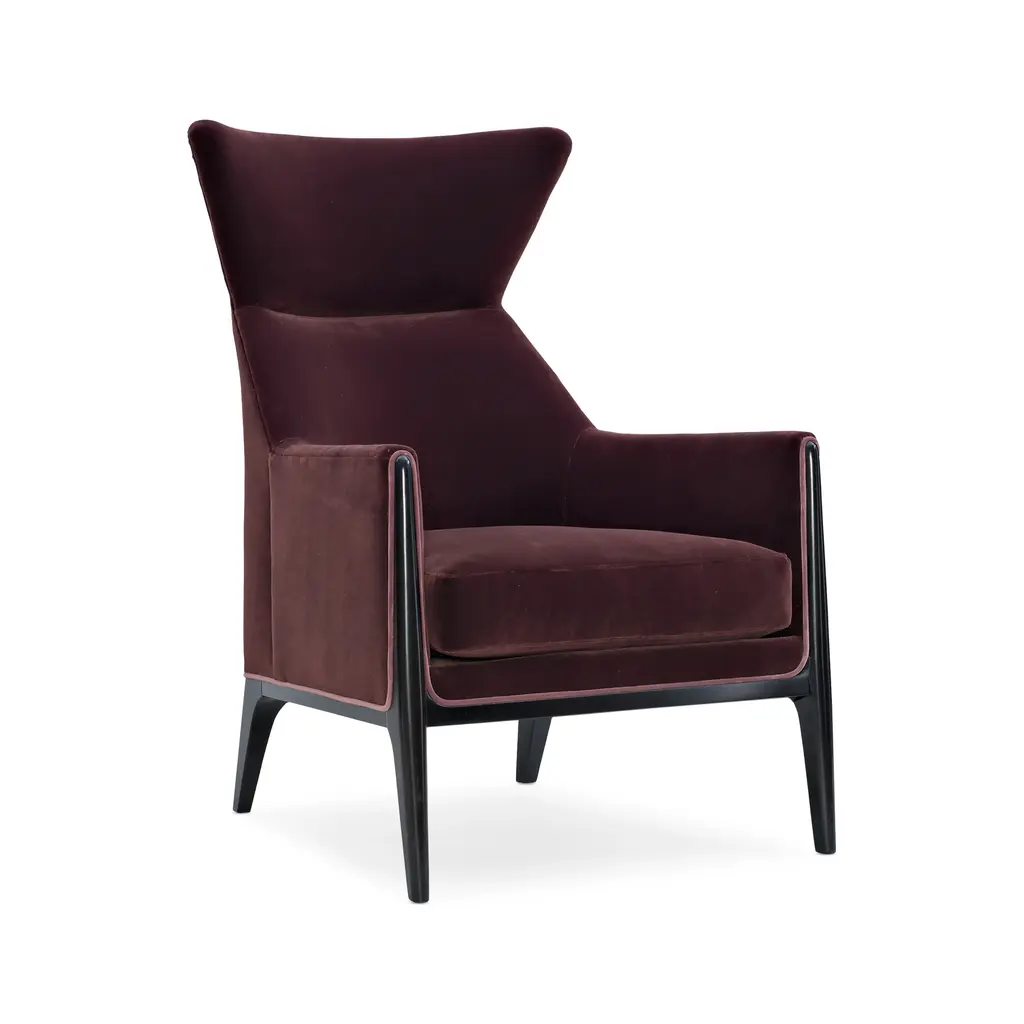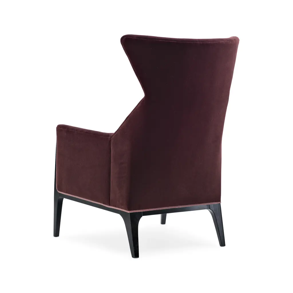 Featuring style that knows no boundaries, this unique chair is rich in color, material and presence. It represents an artist's interpretation of the classic wing chair and is destined to shine in any setting. Its bold mo-velvet cover is featured in a rich shade of eggplant that shimmers and shines when it catches the light. With the power to instantly modernize a space, this distinctive chair works beautifully on its own or as a pair across from a sofa or fireplace. Features