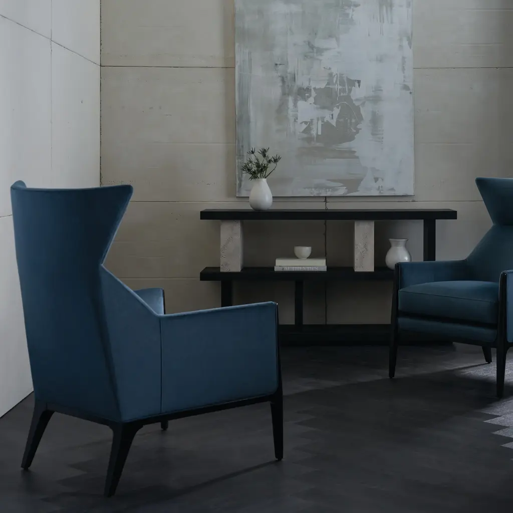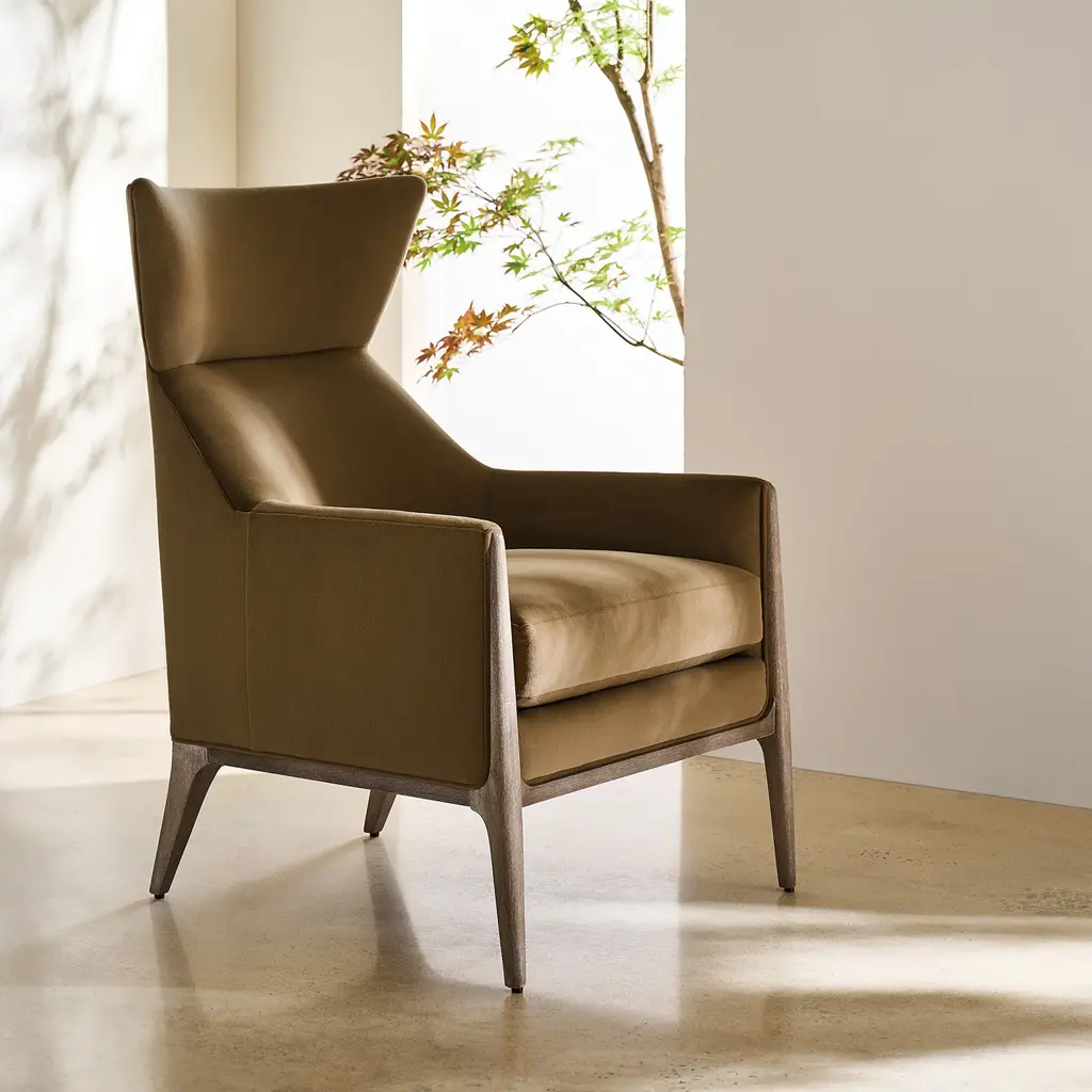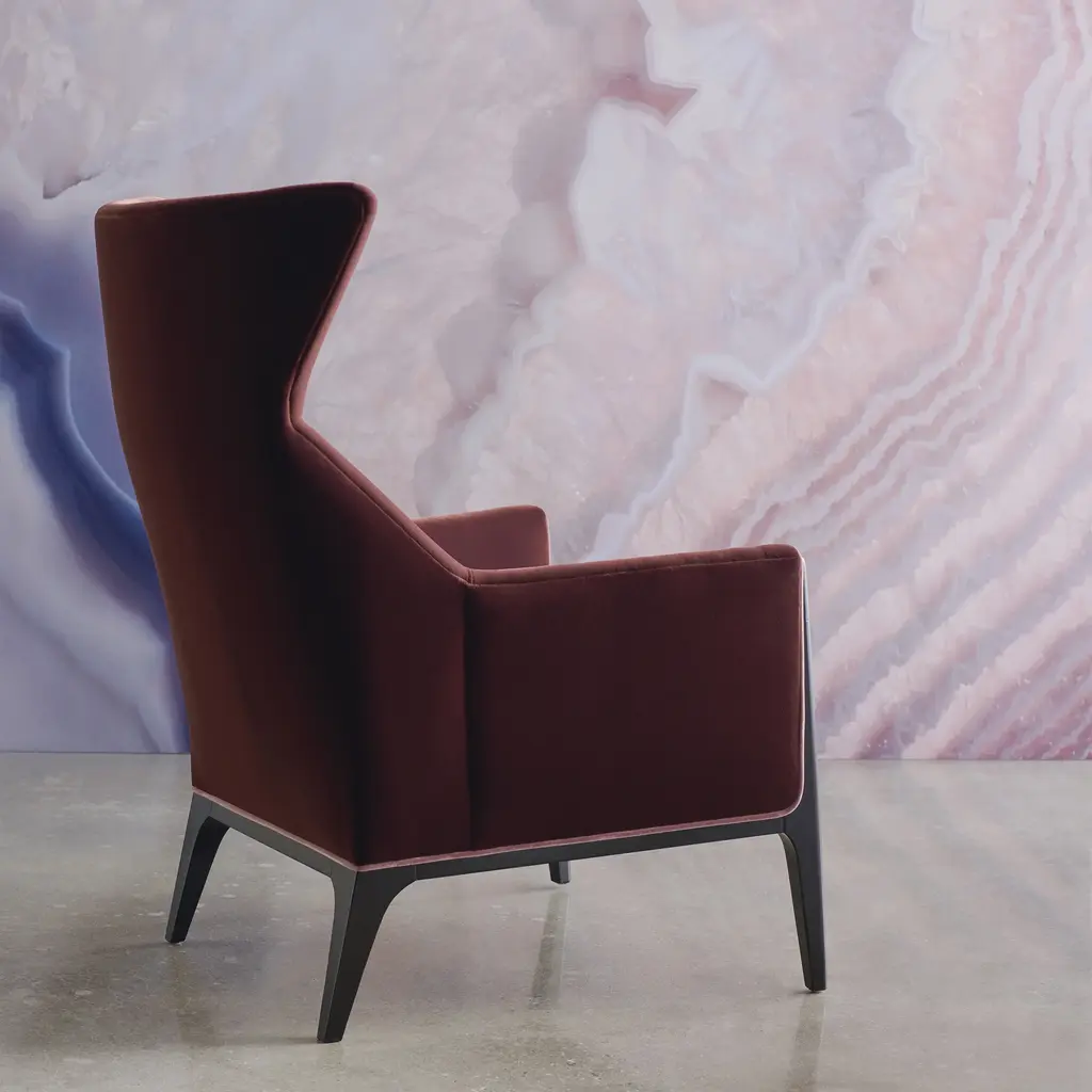 Featuring style that knows no boundaries, this unique chair is rich in color, material and presence. It represents an artist's interpretation of the classic wing chair and is destined to shine in any setting. Its bold mo-velvet cover is featured in a rich shade of eggplant that shimmers and shines when it catches the light. With the power to instantly modernize a space, this distinctive chair works beautifully on its own or as a pair across from a sofa or fireplace. Features