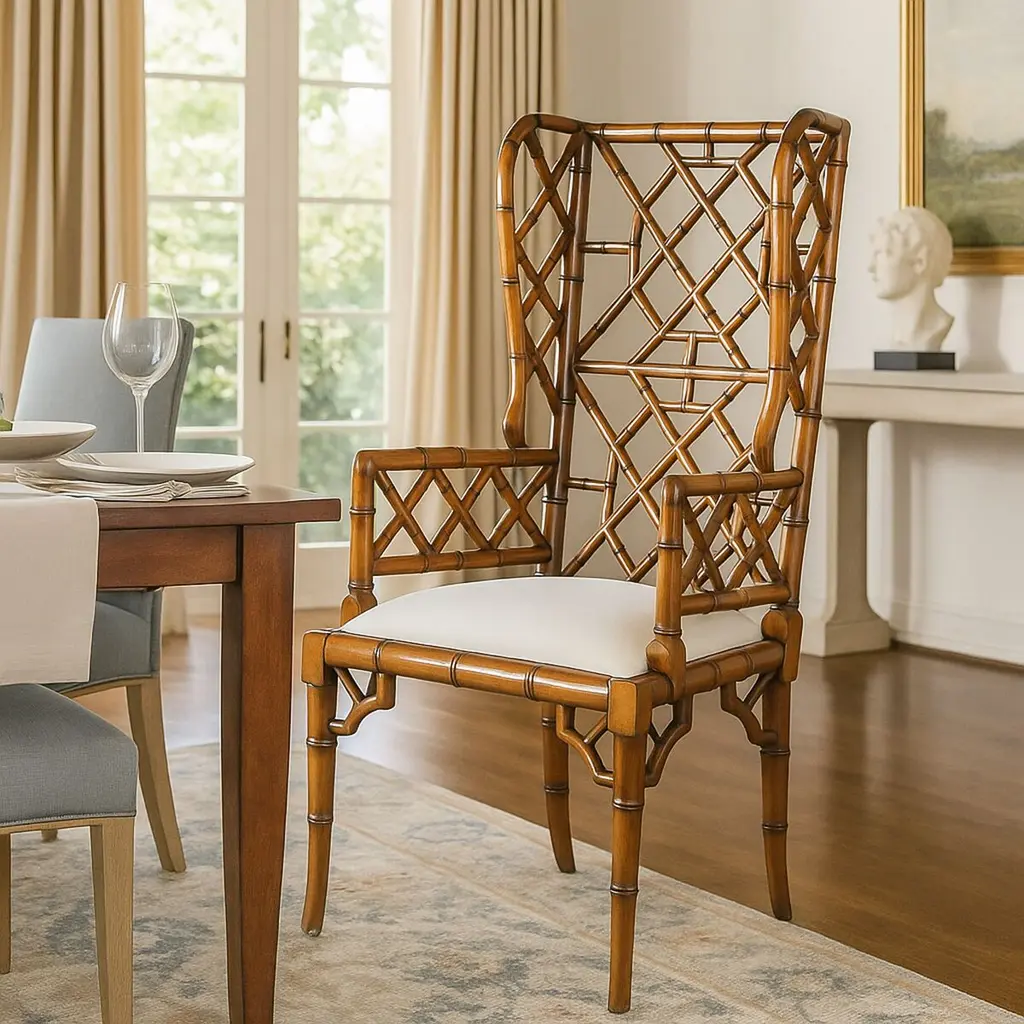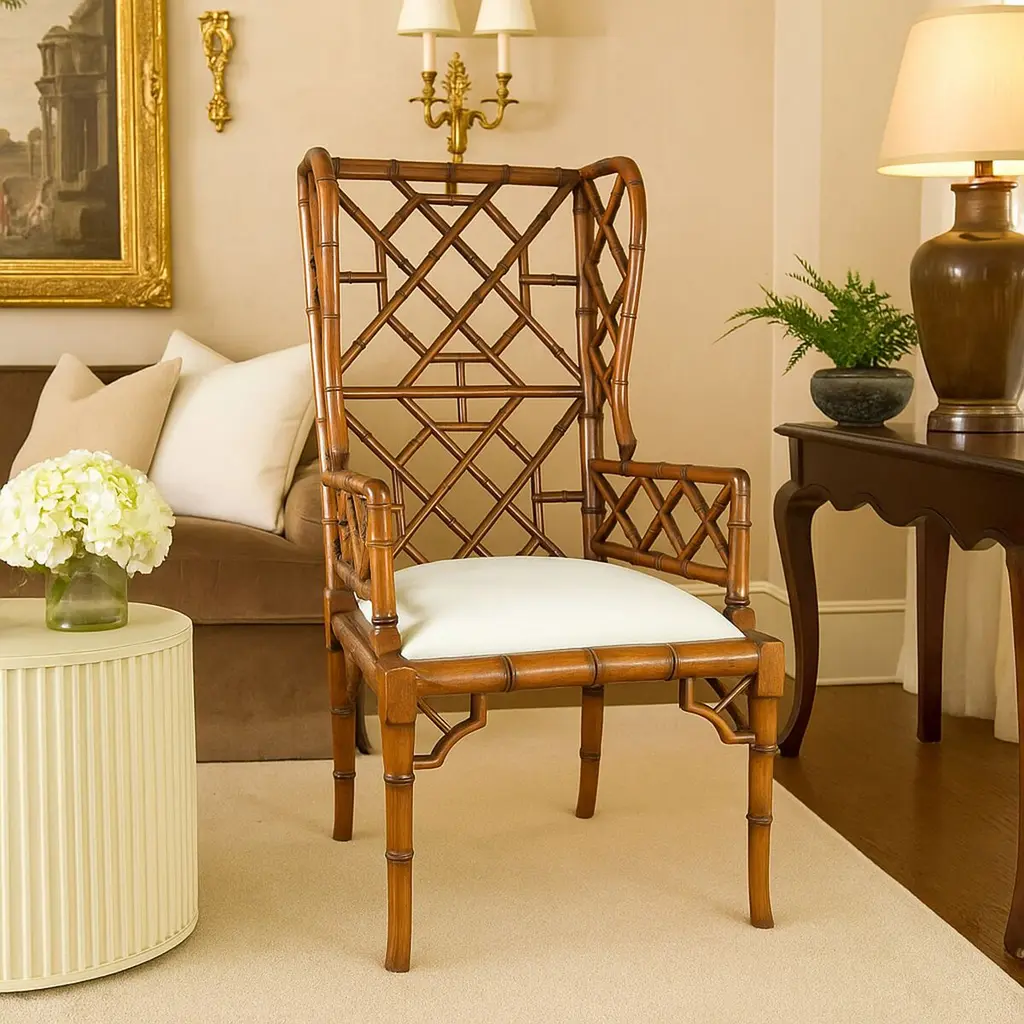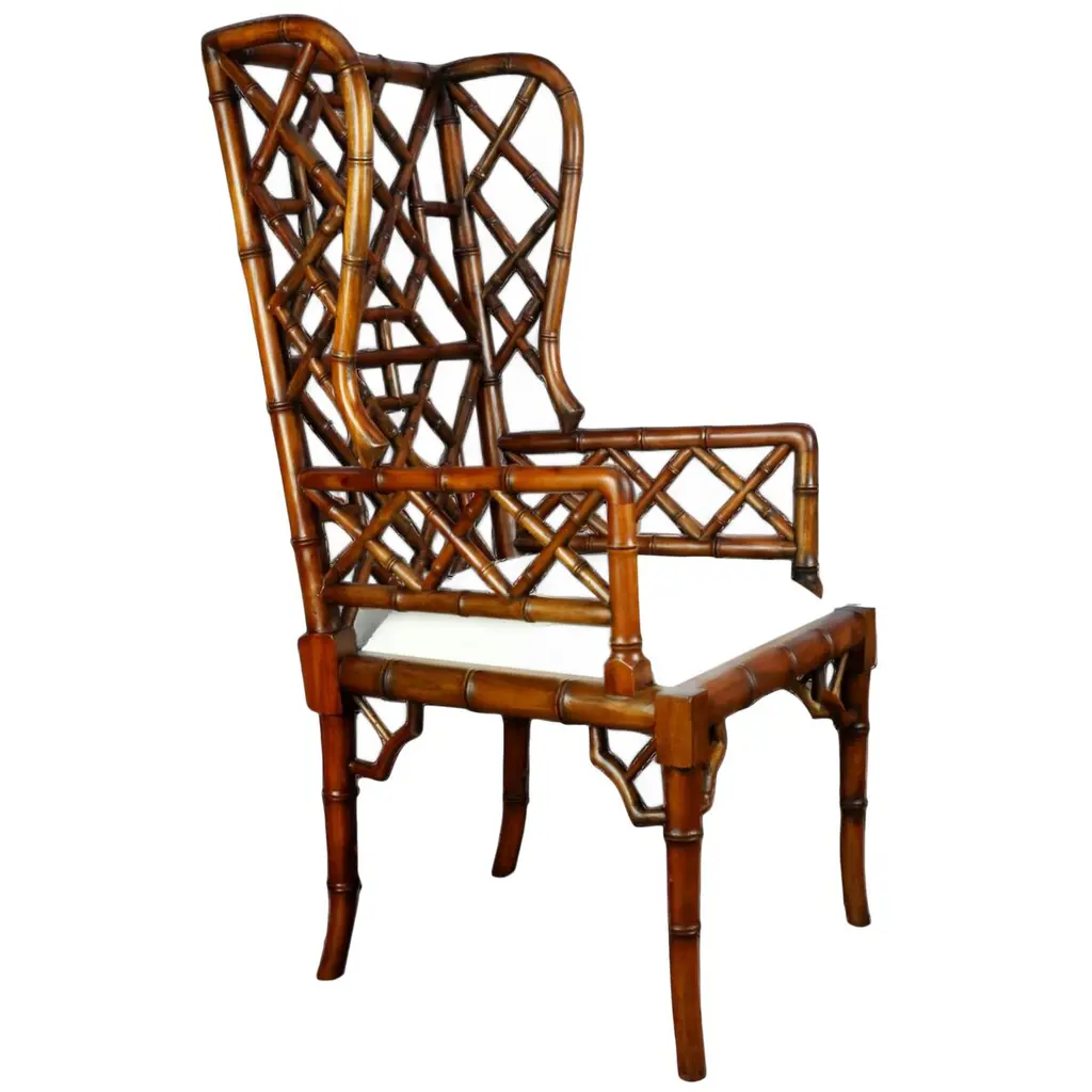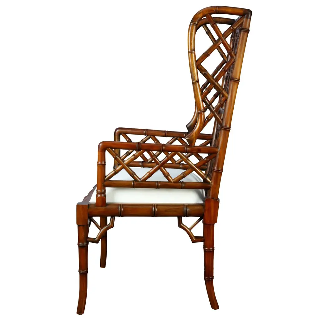 Chinoiserie Wingback Chair, Distressed Walnut