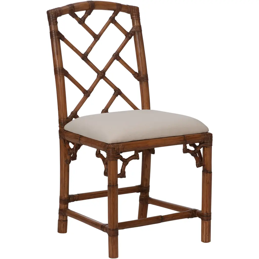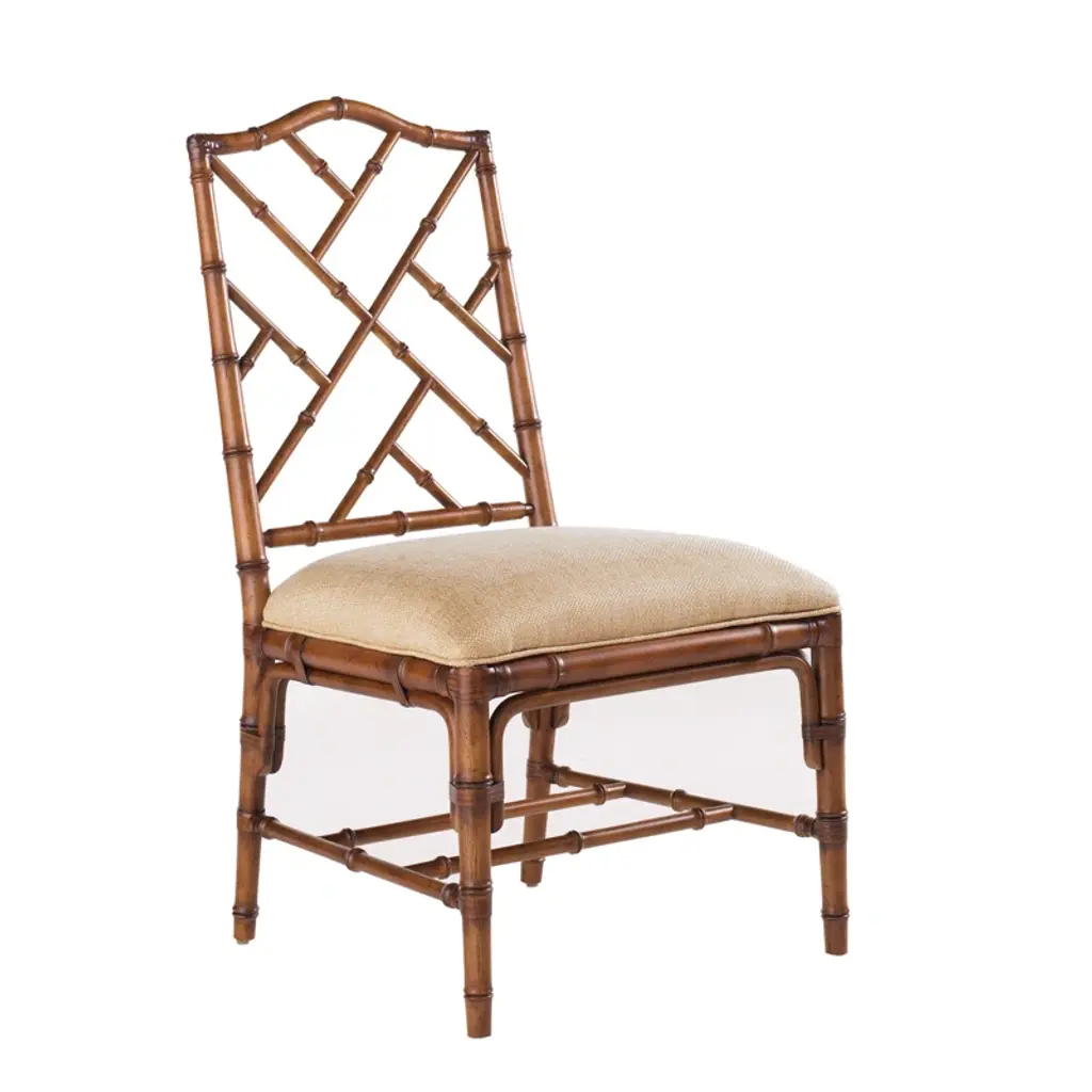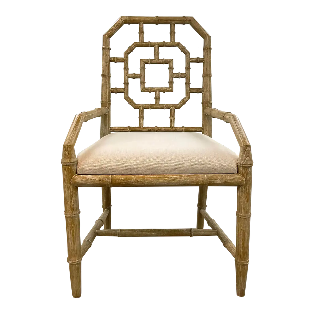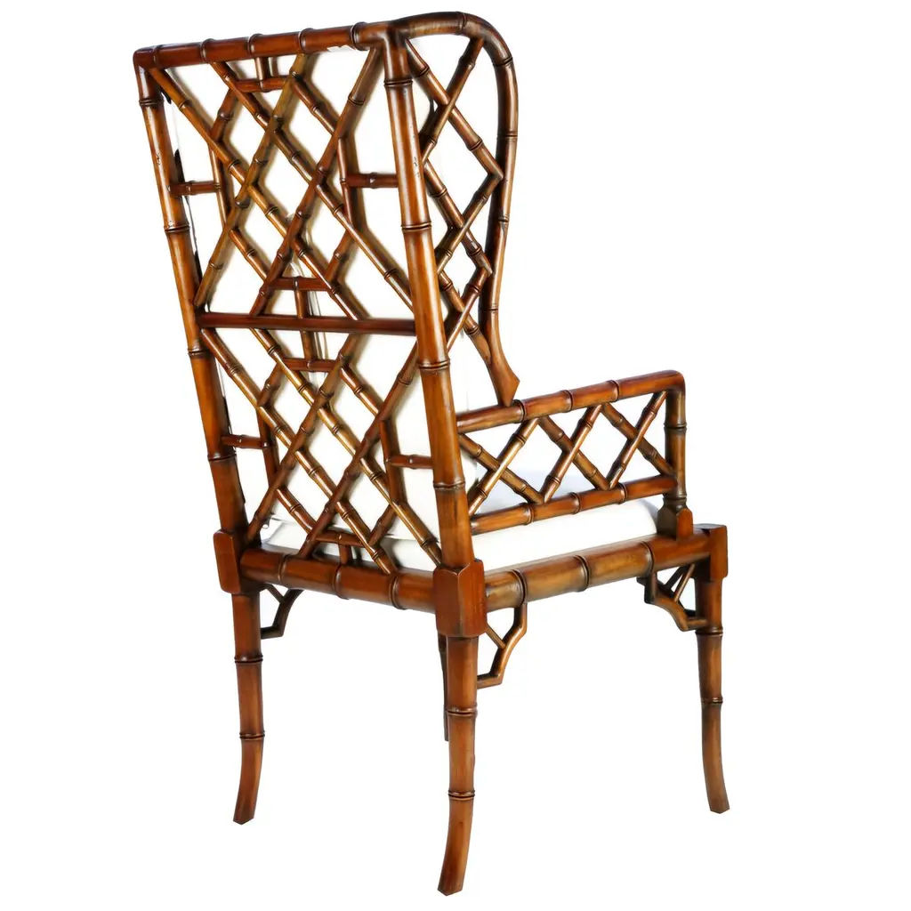 Carved of durable (and beautiful) mahogany with an artfully distressed walnut finish, this handcrafted chair features a bamboo-style frame and a classic wingback silhouette. Removable foam-filled linen seat cushion offers plush comfort.