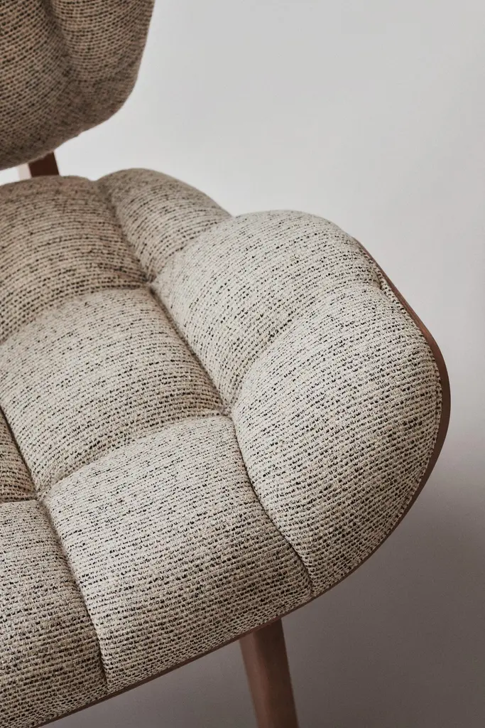 Mammoth chair + ottomanSigned by Rune Krøjgaard & Knut Bendik Humlevik for Norr11. Dimensions:- Chair: W 89 cm / D 87 cm / H 104 cm / SH 35,5 cm- Ottoman: W 61,5 cm / D 53 cm / H 37 cmModels shown on the picture:Wood: Light Smoked oakFabric: Barnum bouclé 3Wood types available: natural oak / light smoked oak / dark smoked oak / black oakFabric: large variety availableThe Mammoth chair is a welcoming modern wing chair. The high back, hugging wings and fluffy upholstery provide superior comfort and a sense of privacy. The seat and back are formed from the same compression mold, giving the chair its signature clean minimalistic look.Just like the original, the Mammoth Sofa balances style and comfort perfectly. The welcoming wings envelop you in seclusion and serenity, making the Mammoth Sofa perfect for public spaces, hotel lobbies and offices.The Mammoth Ottoman is handcrafted with a solid oak frame designed for extra comfort together with the Mammoth Chair, the ottoman has matching upholstery and is formed via the same compression mould as the Mammoth Chair.Norr11's entire range of wooden furniture is produced with water-based lacquer. Using water-based lacquers instead of standard lacquers reduces the emission of harmful substances significantly, improving indoor and external climates while making for better working conditions in the production phase.