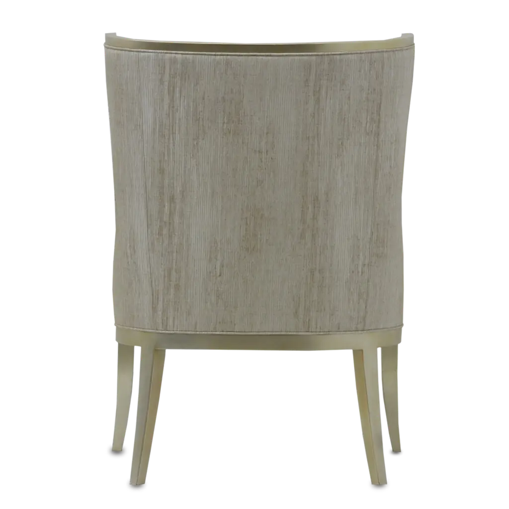Chic, comfortable, and timeless, the Garson Silver Linen Chair is an updated take on the classic wingback design. The frame, made of mahogany with a silver finish, has a tailored feel as it meets the piping in the same fresh file linen as the upholstery fabric. The silvered material has a luminous sheen to it and is striated with gold to bring it a subtle texture. The pared-down lines of the chair’s profile are fitting for many interior design styles. Introducing added sophistication is the fully upholstered back, which means it can float in a space. The Garson is also available in muslin for COM. Care Instructions: Wipe with clean cloth
