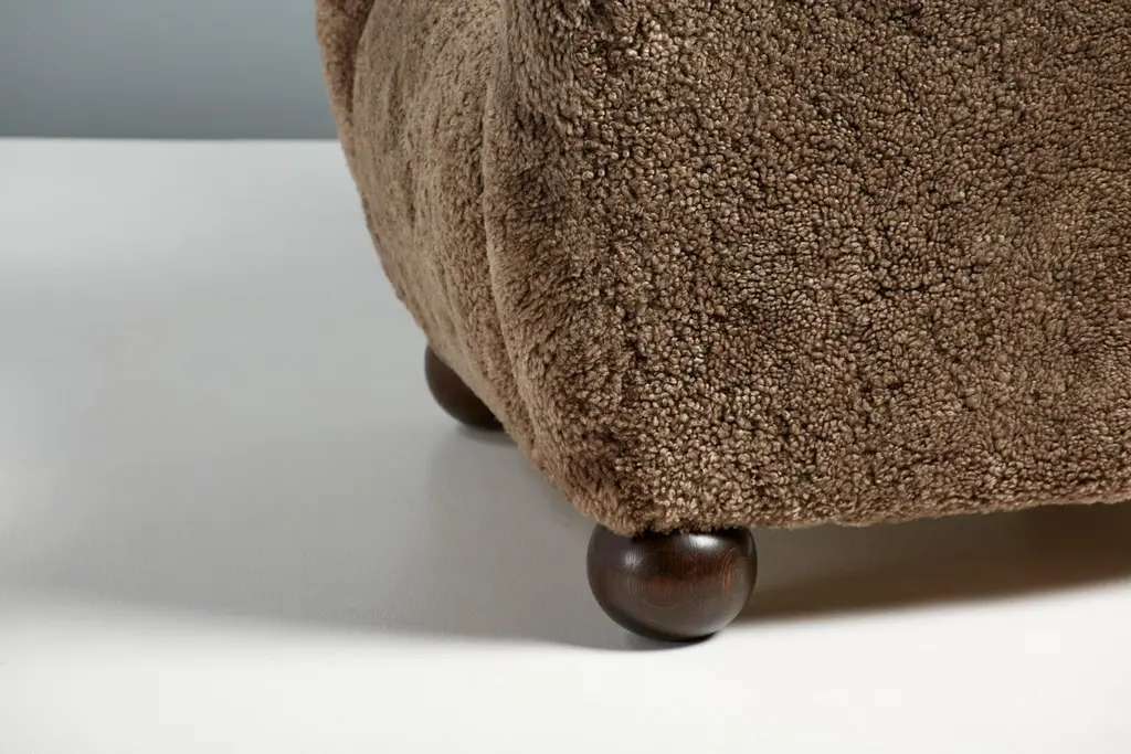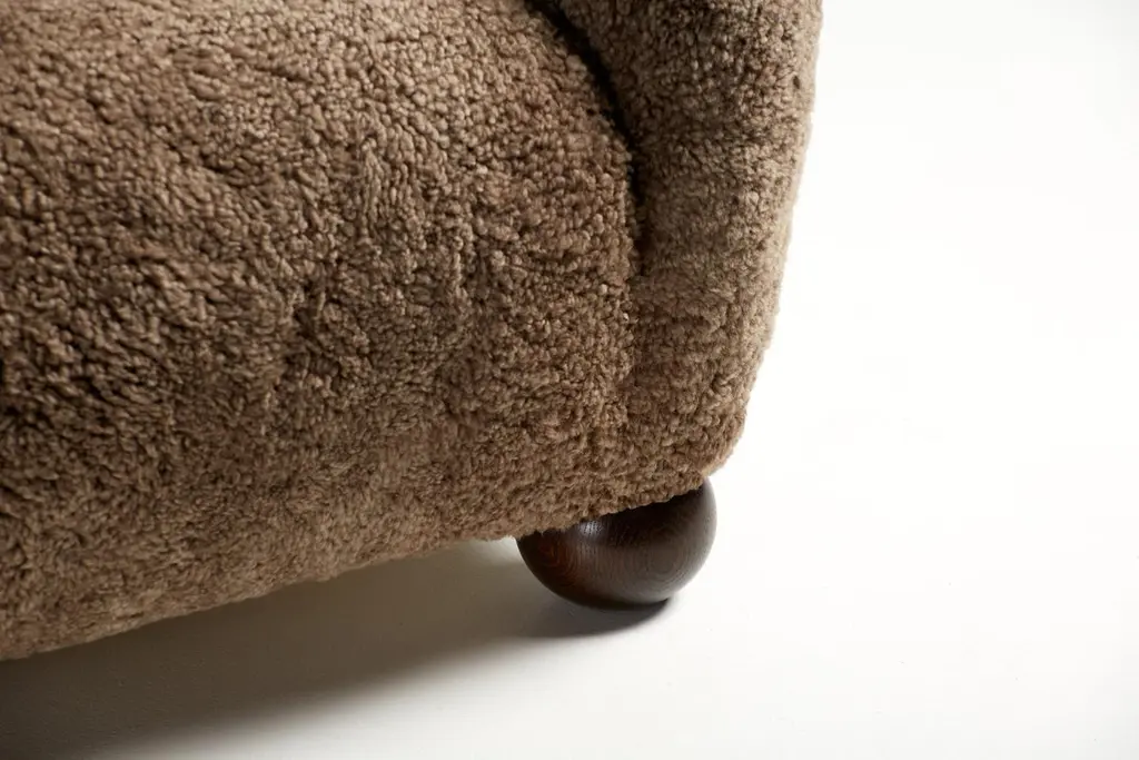 Custom Made Sheepskin Karu Armchair, Sahara Sheepskin & Fumed Oak Feet