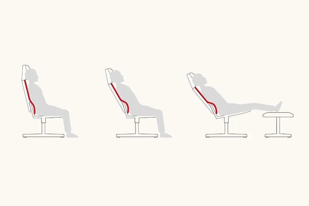 Revolutionary seating concept DS-343 is an armchair that moves when the person seated moves – because the object is constructed not with a classic seating surface that stops at the backrest, but with one that extends to the height of the pelvis. If one leans backwards, the backrest element, from pelvic height on up, automatically moves along with the user – without any mechanical effort, and solely as a result of the change in the posture of the person seated. And the design is equal to this revolutionary seating concept: the silhouette of the wing chair is defined by the skilful folding of the leather. Dimensionally stable Neck leather in thicknesses of up to 5 mm is skilfully processed by hand to ensure that it continuously cascades over the edges.We did not bring a designer on board to develop this wing chair – with all due respect: we are not exactly short on expertise in this area. Still, we found that thinking outside the box helps us better understand the human body, its features and needs. So we looked around in the fields of science, medicine and orthopedics and brought an expert on board. Star physical therapist Bart Van der Heyden drew our attention to the fact that the human body normally maintains a dynamic equilibrium when forces act on it. Yet the pivot point of swaying chairs does not follow our axis of motion. Van der Heyden came up with a brilliant solution to this problem: the seat shell on this armchair is extended to pelvic height to create an ergonomic sitting posture. If you lean backwards, only the upper part of the backrest moves. This provides support to the spine, and the chest opens. In addition to the backrest, the seat shell tilts backwards to achieve an even better lying and relaxing position. This new movement mechanism is patented – so you can enjoy our seating revolution to the fullest.Additional information:Material: LeatherCategory: Neck - Schiefer Type: Natural Nappa leatherThickness: up to 5 mmCharacteristics: An innate natural quality with an incomparably distinctive, even rustic, aura; it is a true eye-catcher – simply incomparable. A cover made from Neck requires an entire section of hide for each back, side and seating element. When joined, it creates a so-called optical stitch seam: a piece of art from De Sede craftspeople that requires unsurpassed skill.Dimensions: 70 W x 100 D x 120 H cmSeat height: 42 cmArmrest height: 58 cm.