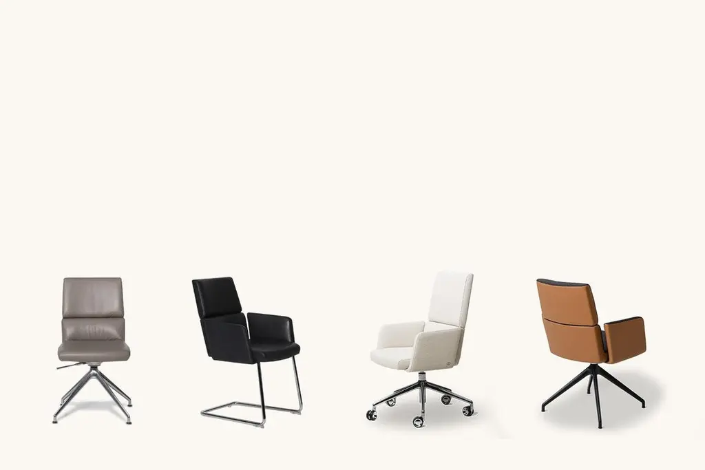 When the little brother suddenly grows up DS-414 is a chair that follows the movements of the person seated and provides noticeable support for the sitting posture: sitting has never been so healthy – no wonder, since the model is based on a novel movement mechanism. Available as a cantilevered chair or with a star base, the consistent further development contains everything one needs to bring the new culture of sitting to the table. But De Sede takes things a step further still, by selecting materials that permit a high-quality material mix of leather and fabric, suddenly lending DS-414, the little brother, a distinctive appearance all its own.How do you unite perfect ergonomics and optimal comfort? By sitting down in DS-414 – the evolved form of the DS-343 wing chair that adapts to the movements of the person seated. With DS-414, too, the object is not constructed with a classic seating area that stops at the backrest; instead, it extends up to the height of the pelvis. If one leans backwards, the backrest element, from pelvic height on up, automatically moves along with the user – without any mechanical effort, and solely as a result of the change in the posture of the person seated. DS-414 can be set up or positioned anywhere without any problems, making the joys of dining even more pleasurable and the fun of company even greater than before: the proven movement mechanism actively supports the spine, promoting better posture and making everything a delight: dining, discussing, reflecting – even working at the table is suddenly a great deal easier.Additional information:Material: FabricCategory: Select - BlackType: Nappa leather, lighty pigmentedThickness: 1.2 to 1.4 mmCharacteristics: Elegant in appearance, particularly durable, less sensitive to humidity, spots and light exposure thanks to an easy-care finish. Living unites practical considerations with a high aesthetic.Dimensions: 57 W x 60 D x 90 H cmSeat height 48 cmArmrest height 64 cmAvailable in other upholstery options: Living, touch, cashmere, natural, club, coloral, craft, pine, re-wool, velour, maple, arco and lilaAvailable in other base options: Swivel base and star base.