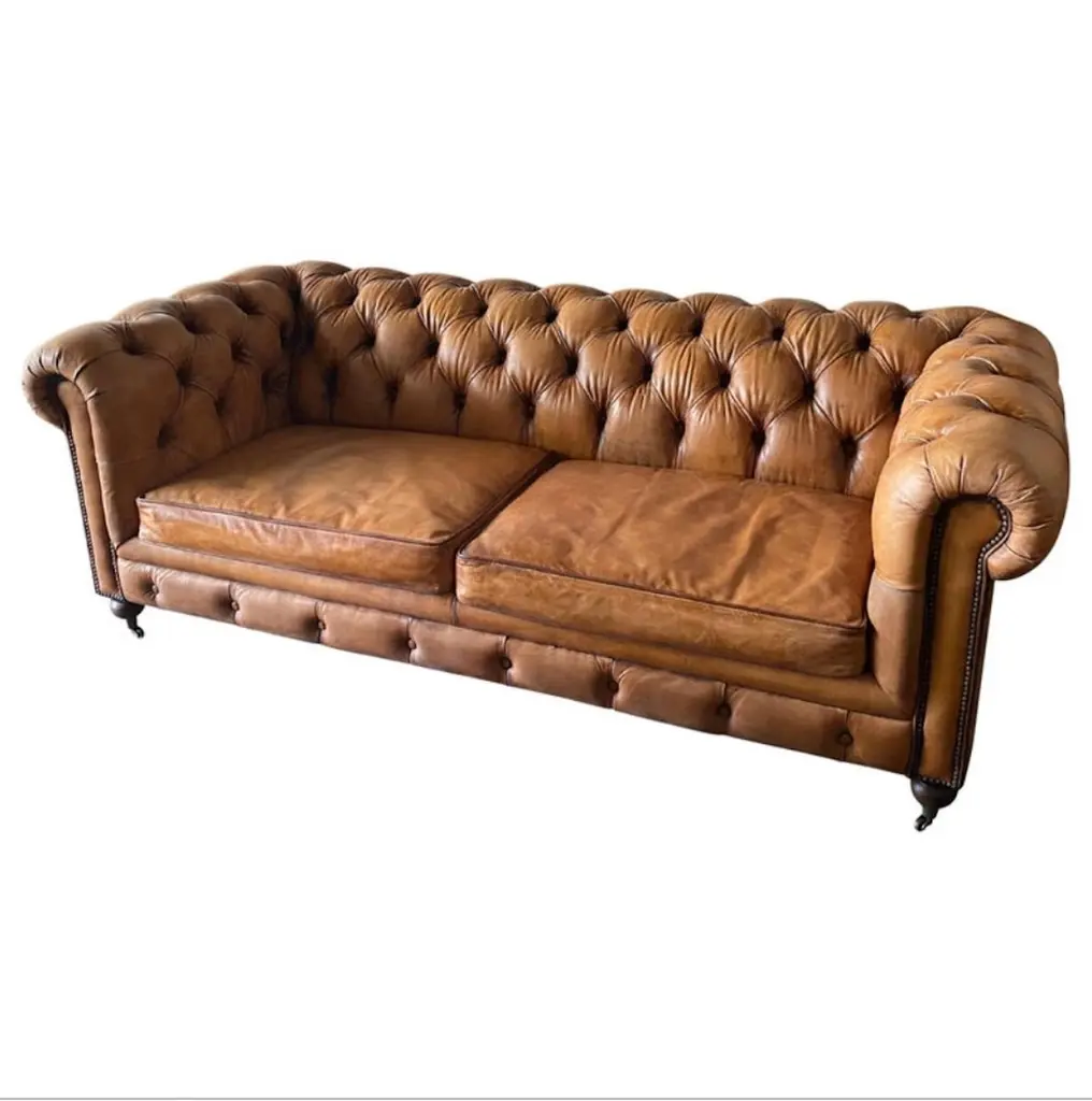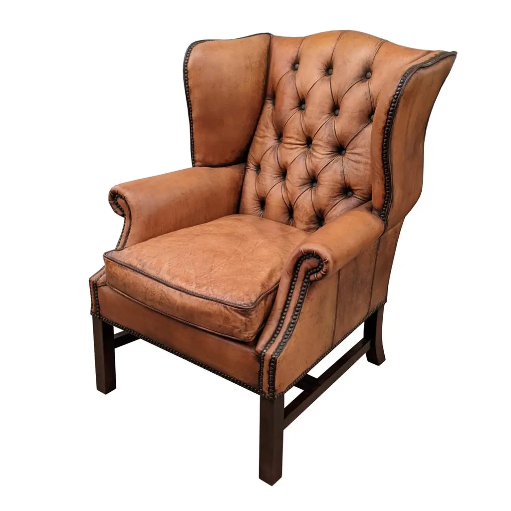 Four English Style Wingback Chairs With Tufted Back, Hand Distressed Leather