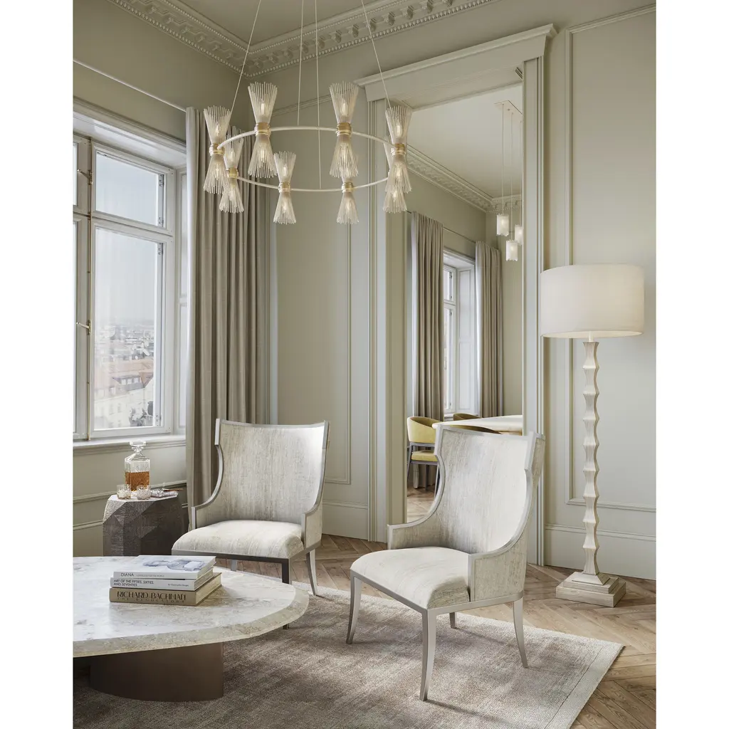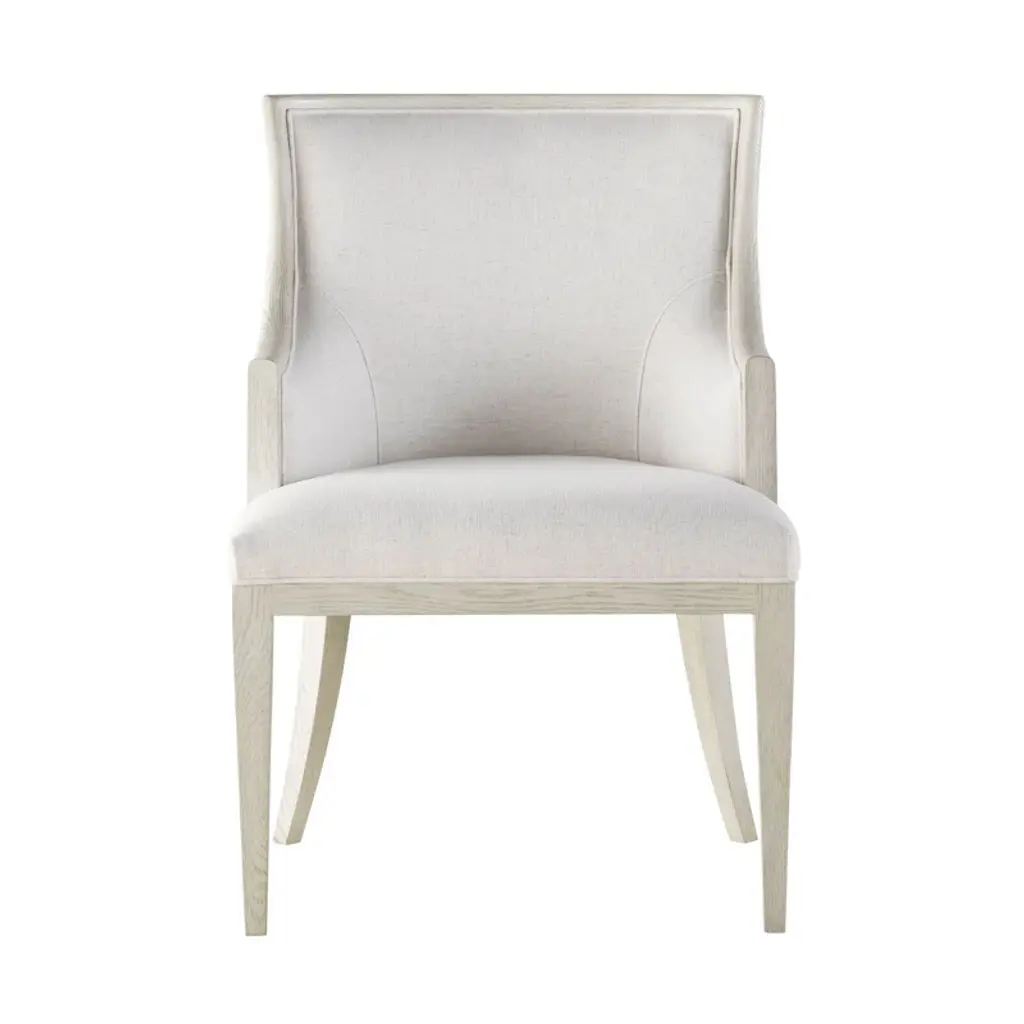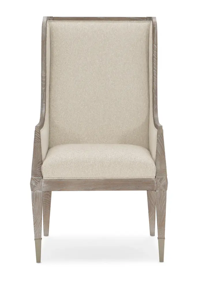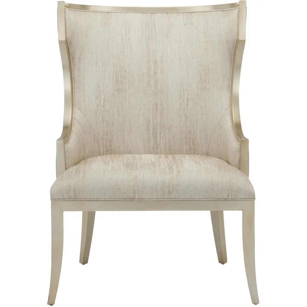 Chic, comfortable, and timeless, the Garson Silver Linen Chair is an updated take on the classic wingback design. The frame, made of mahogany with a silver finish, has a tailored feel as it meets the piping in the same fresh file linen as the upholstery fabric. The silvered material has a luminous sheen to it and is striated with gold to bring it a subtle texture. The pared-down lines of the chair’s profile are fitting for many interior design styles. Introducing added sophistication is the fully upholstered back, which means it can float in a space. The Garson is also available in muslin for COM.