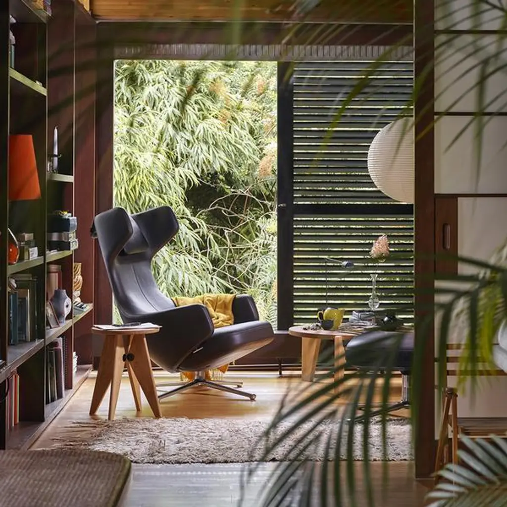A synchronized mechanism is concealed beneath the upholstery of the Grand Repos wing chair and can be locked in any position, for optimum back support and utmost comfort at any reclining angle. The characteristic head section invites the user to lean back and creates a sense of shelter and seclusion. The decorative seams in the fabric or leather upholstery lend the armchair an almost artisanal look.