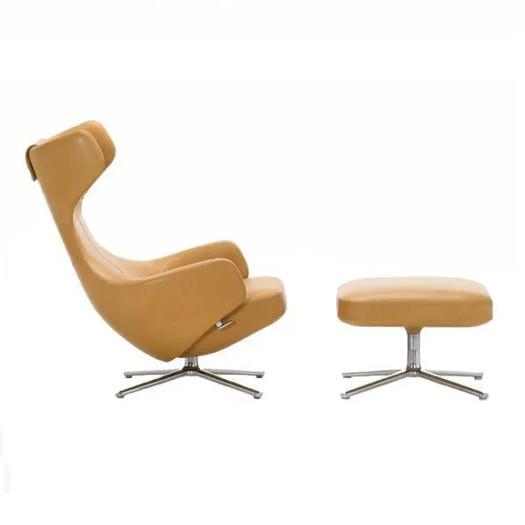 A synchronized mechanism is concealed beneath the upholstery of the Grand Repos wing chair and can be locked in any position, for optimum back support and utmost comfort at any reclining angle. The characteristic head section invites the user to lean back and creates a sense of shelter and seclusion. The decorative seams in the fabric or leather upholstery lend the armchair an almost artisanal look.