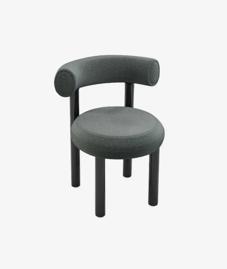 Iola chair comes with a seat, back and armrests in a injected flameretardant polyurethane foam covered with the listed fabrics. The structure base is available for custom orders in wooden ash, natural ash finish or anthracite. The body is packed separately from the base. Here you are shown the Iola Armrest Chair in Stained Black ashwood Base with Foam Seat and size 57.4x58x83h. The Iola Chair is also available for custom orders in a 4-wheeled office chair, Barstool, and without arms, and with a metal structure. Iola shows off design with an international approach, focusing on the ergonomics of the form, ensuring a careful look, one with character. We have given the body the shape of a shell, producing it in expanded polyurethane. Then, on the advice of the hardest to please, we pulled the wings and then the two large arms came out. Iola hints at fashion but comes across as a modern Classic.Founded in 2012 by Gaia Giotti and Jonah Scarselli, E-GGS is concerned with the design of a transversal approach, ranging from product design, interior and architecture. The attention and the curiosity are captured by the discovery of the unusual in everyday life, in the search for new forms of expression and materials. It is the exploration of the needs of everyday ideas that arise for ideas. In Florence E-GGS is located in a laboratory that integrates experimental and creative skills of different professions. Additional information:Dimensions: Seat height 46.5 cm, overall chair height 83 cm, width of chair 57.4 cm, depth of chair 58 cm.Base finishes: Natural ash, stained black ash, anthracite ash.VAT not included.