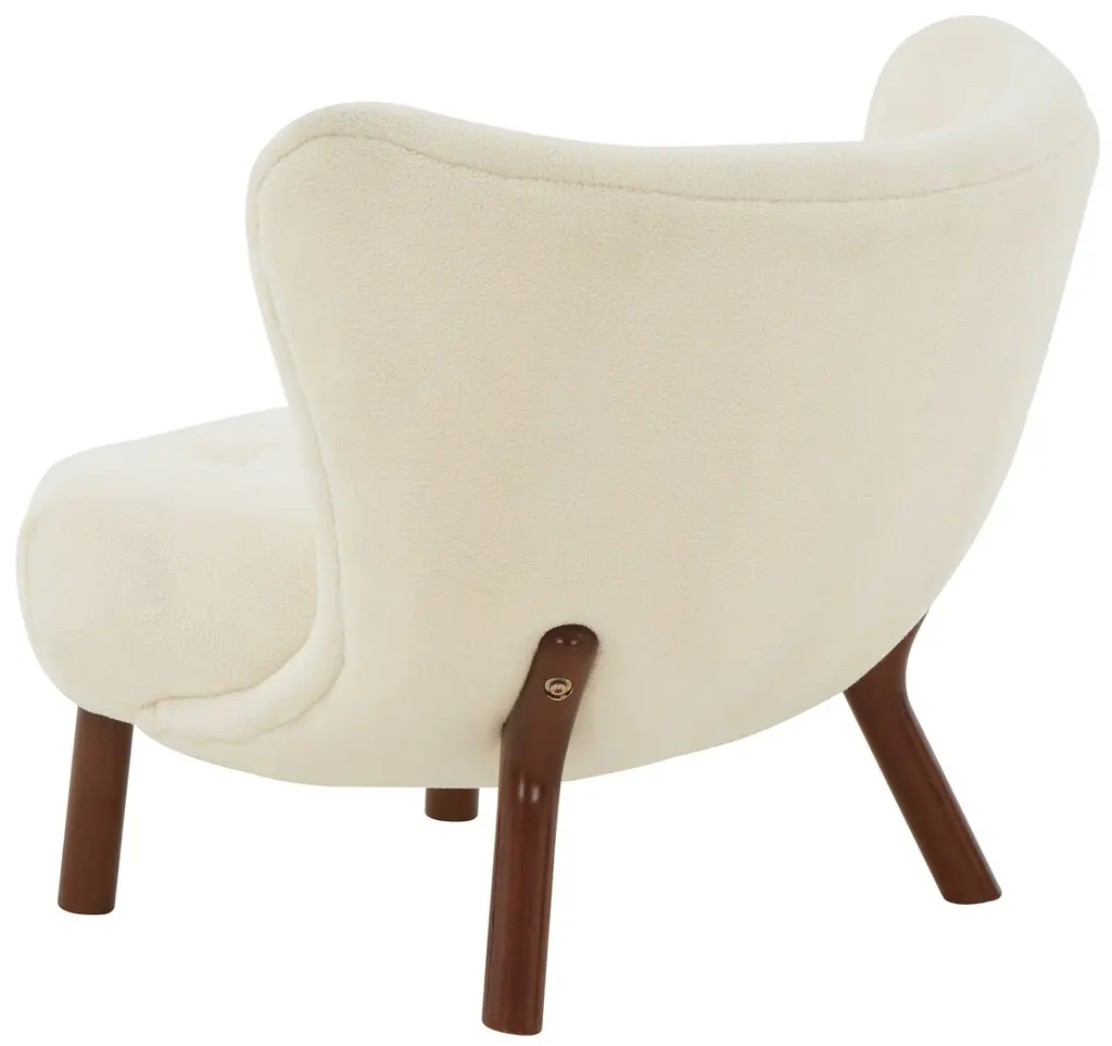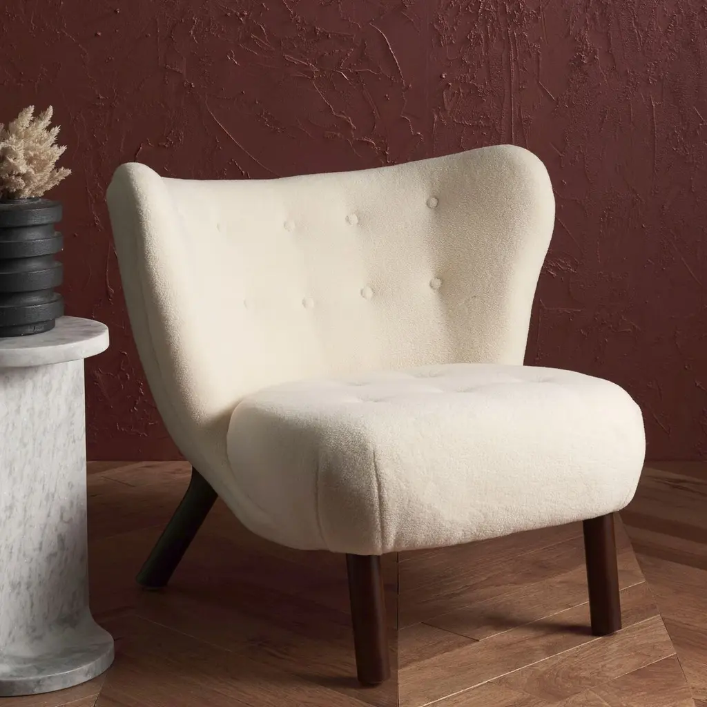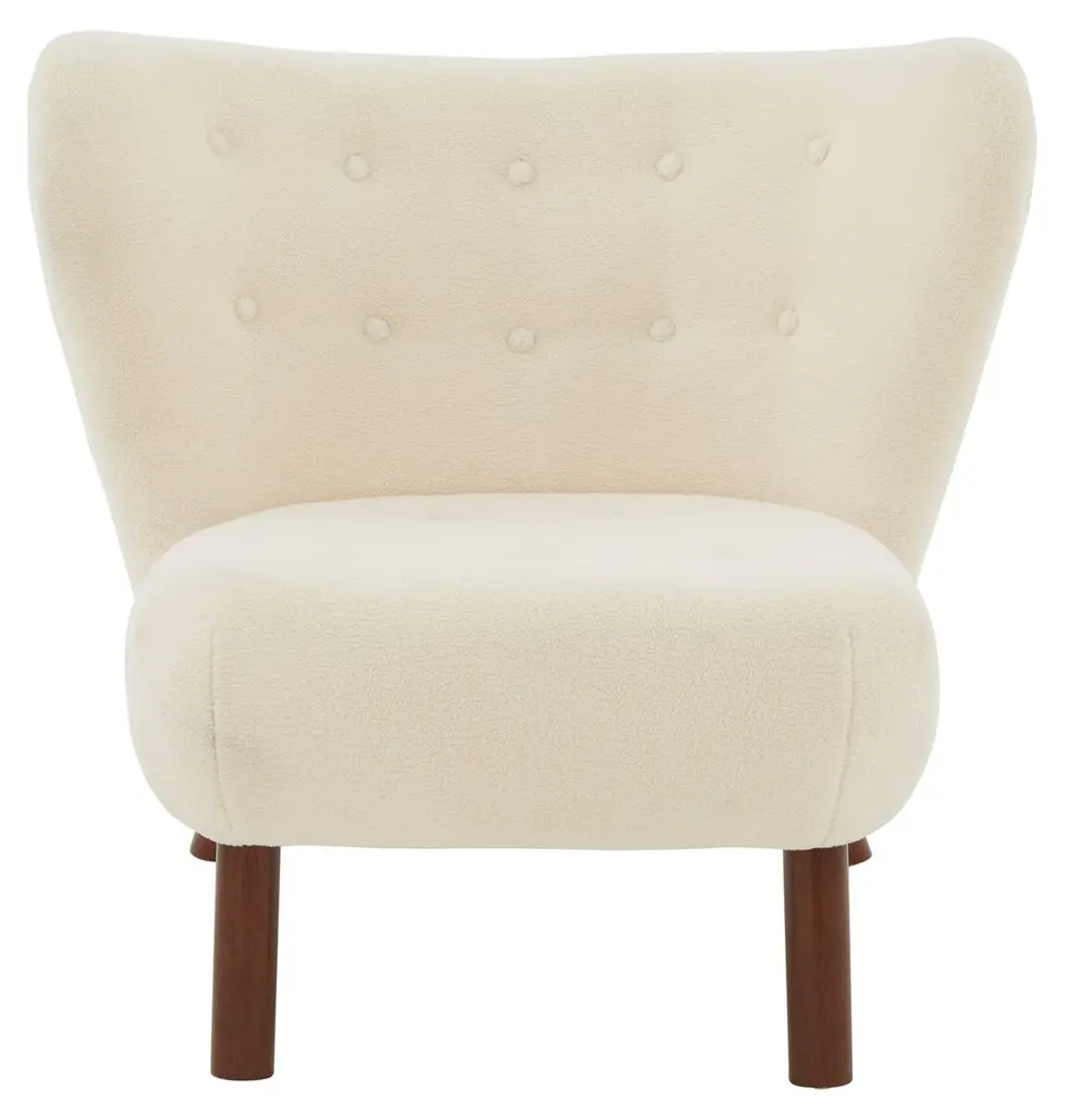 Embrace a cozy retreat with the inviting warmth and style of our accent chair. Inspired by mid-century modern design, our accent chair sculpts a beautifully streamlined wingback to wrap you in comfort. The stunning tufting detail on the back and seat add to the modern charm of our accent chair. Perched upon chunky wooden legs, the chair receives an airy lift to complement any corner of your home. It is upholstered to offer a cozy and comfy seat in a study, reading nook, living area, or bedroom.