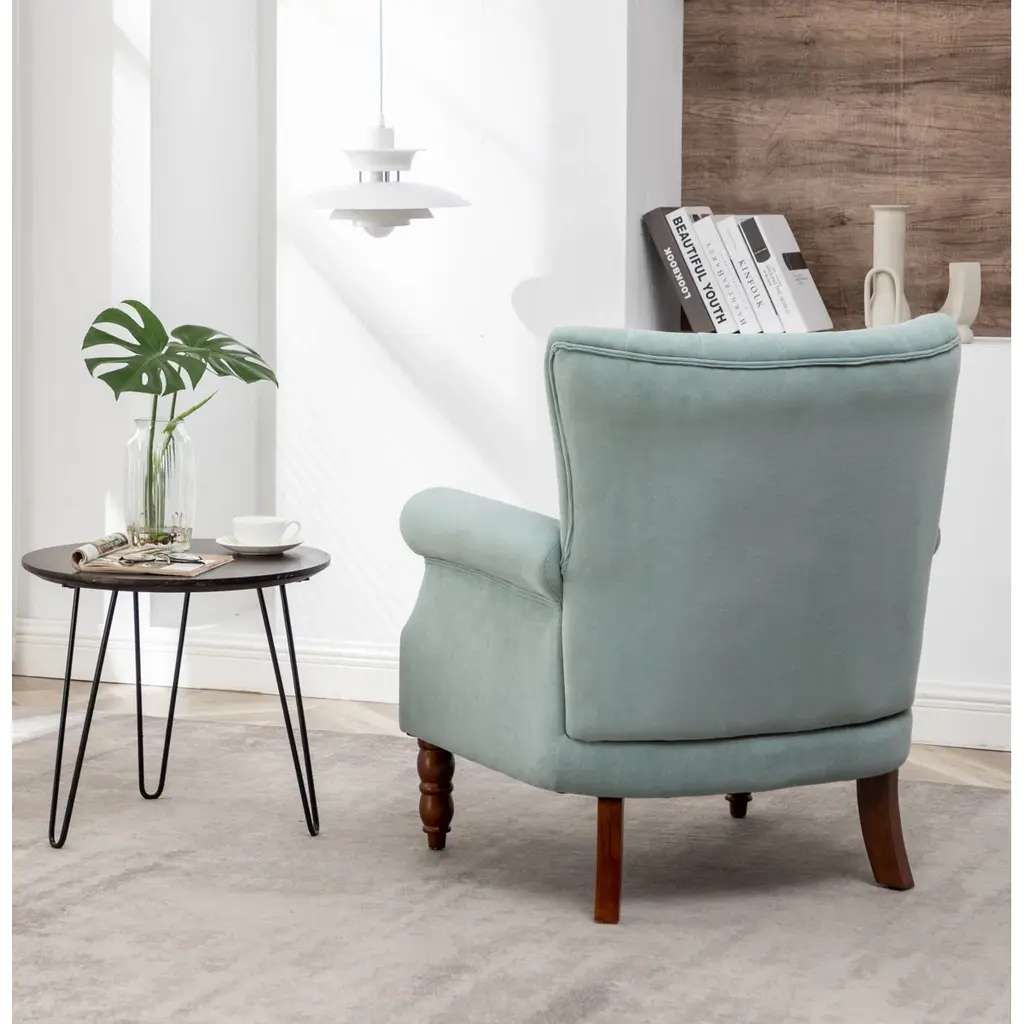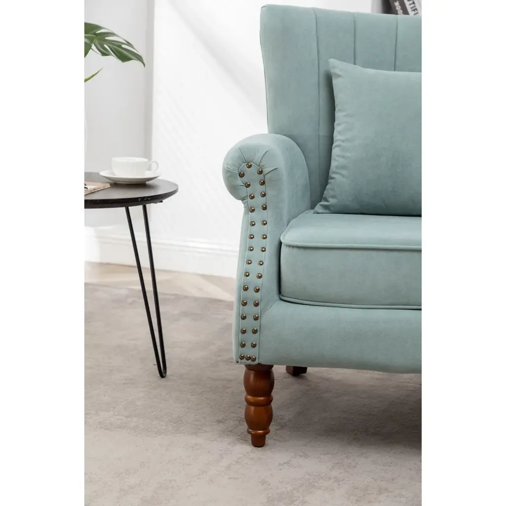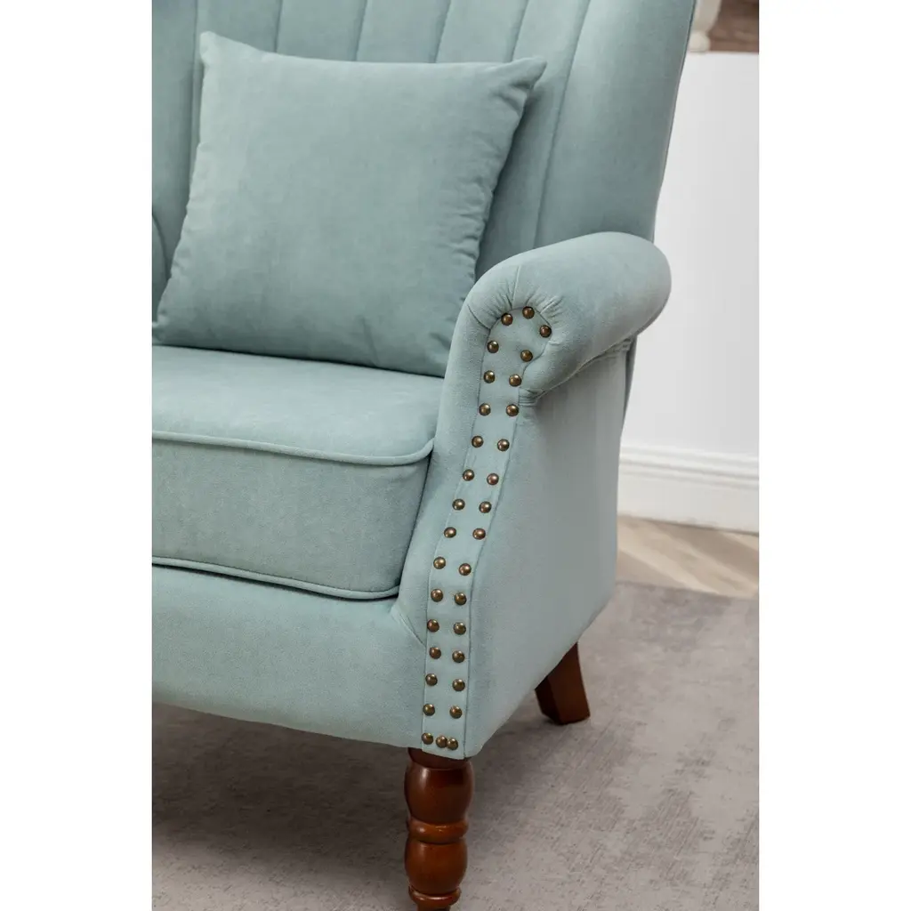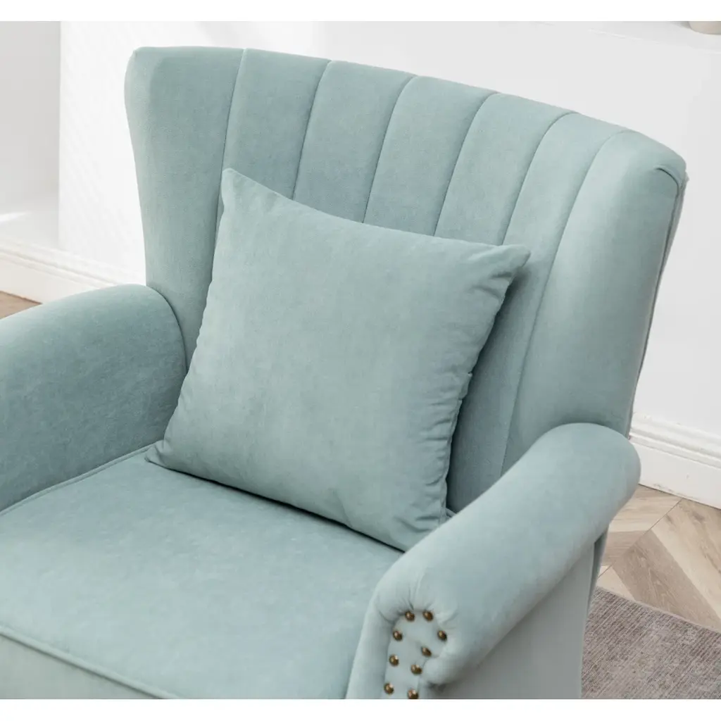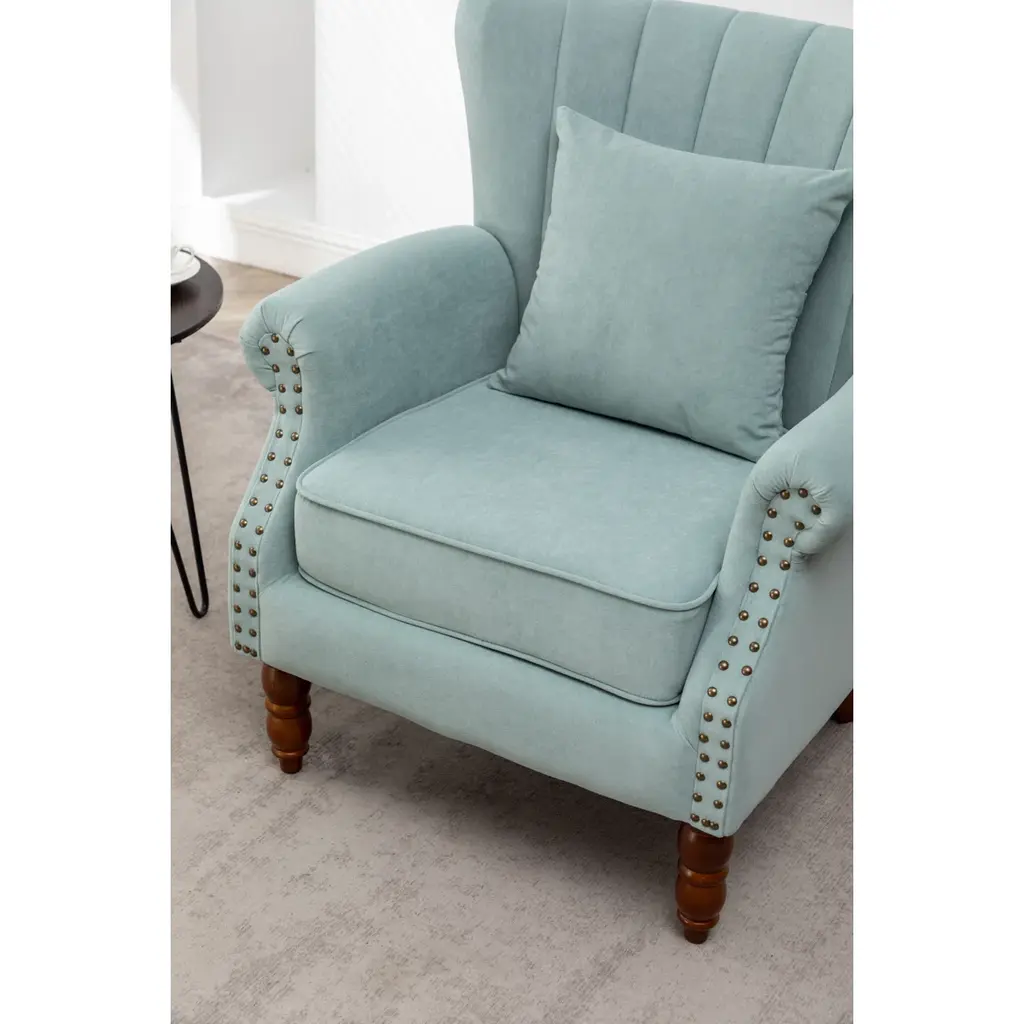 About This Product This wingback chair brings a traditional, elegant style to your space. It's built with a kiln-dried solid rubberwood wood frame that rests on classic turned legs in a rich finish. This chair is upholstered in luxe velvet, the seat is filled with fiber-wrapped foam, and sinuous springs support you as you relax. The channel tufting and nailhead trim add a tailored touch. Plus, its seat cushions are removable, so it's a breeze to clean. This chair comes with an extra toss pillow for a layer of texture. It has a weight capacity of 300 pounds. What's Included? Accent Pillows Not Included: Ottoman Features The tall curved backrest will supply seating in an upright position to encourage good posture. Moisture-repellent, stain-resistant, and heavy-duty wear live smart fabric cover.