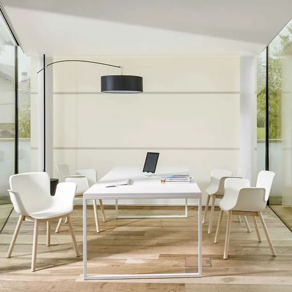 The Juli Plastic Chair from Cappellini brings visual intrigue to your living space. It is designed by Werner Aisllinger. Your chair is composed of glass fiber-reinforced polypropylene for style and durability. This piece is defined by its contoured arms that form a wing-like presentation that makes a bold design statement. Juli boasts a framework of ash wood that provides support while adding a natural, rustic, modern sensibility to the look.