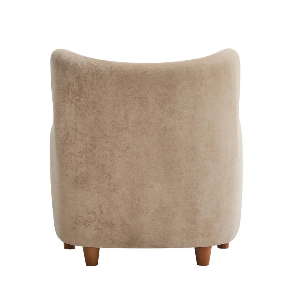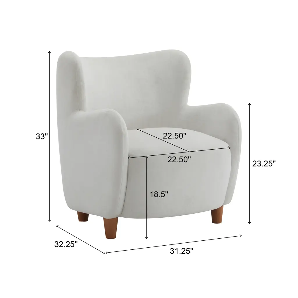 This wingback accent chair, sits comfortable to the ground with a luxe, shapely winged back. Perfect in pairs to add both curves and extra seating to a room.. Soft seating : The pocket spring cushion makes the chair more durable and comfortable.. The great feel of touch: The 100% polyester velvet of this chair is warm and soft, perfect for your living room or bedroom.. seat size: 22.5w*22.5d*18.5h. Mid-century Solid birch legs covered in teak finish.. Easy to assemble. simple in structure, you can build this chair with minimal effort.