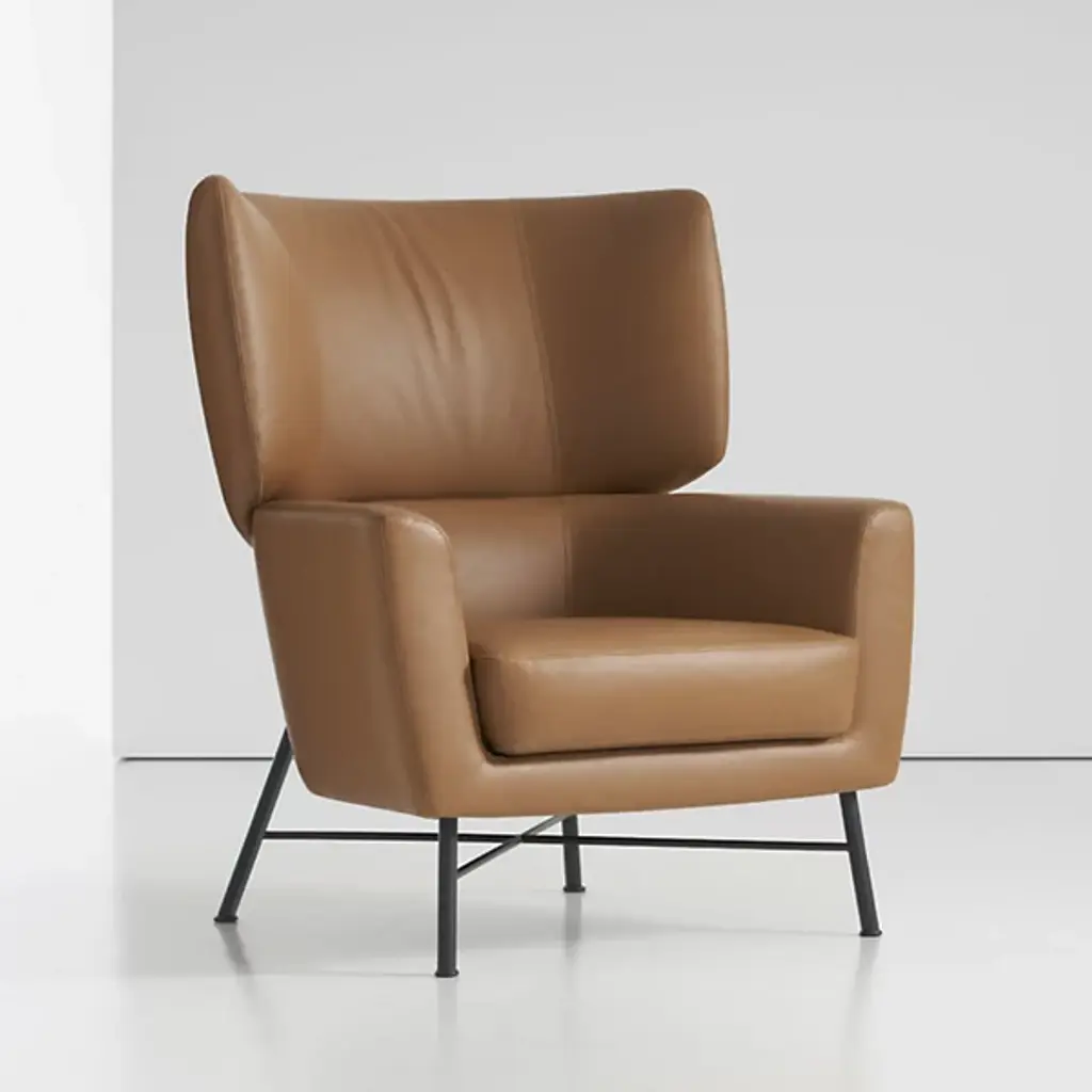 The Mammoth Lounge Chair features a high back and winged design, offering comfort and a sense of privacy that makes it ideal for hotel lobbies, offices, or homes. Its seat and back are made using a single compression mold blending modern design with traditional wingback chair elements. The front upholstered version is available in a wide range of luxurious fabric and leather. The Mammoth Chair is crafted with solid oak wood for its frame and laminated oak veneer for the seat and back. Available in 4 oak finishes.