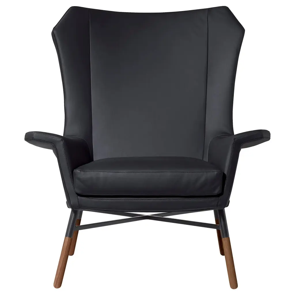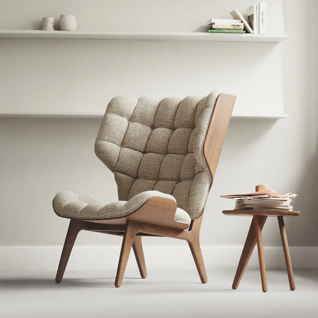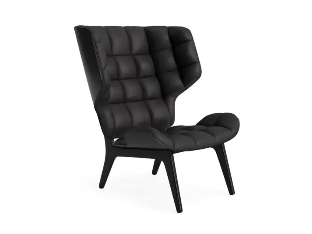The Mammoth Lounge Chair features a high back and winged design, offering comfort and a sense of privacy that makes it ideal for hotel lobbies, offices, or homes. Its seat and back are made using a single compression mold blending modern design with traditional wingback chair elements. The front upholstered version is available in a wide range of luxurious fabric and leather. The Mammoth Chair is crafted with solid oak wood for its frame and laminated oak veneer for the seat and back. Available in 4 oak finishes.