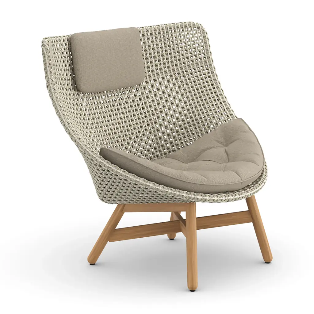 Enjoy total relaxation in the MBRACE Wing Chair from Dedon. An exceptionally comfortable lounge chair design, this wingback-style seat features a solid teak wood base topped with a woven fiber silhouette. Elevated with a plush seat and headrest cushion, this chair is ideal for relaxing on a front porch or engaging in conversation with friends and family on the back deck.Highlights