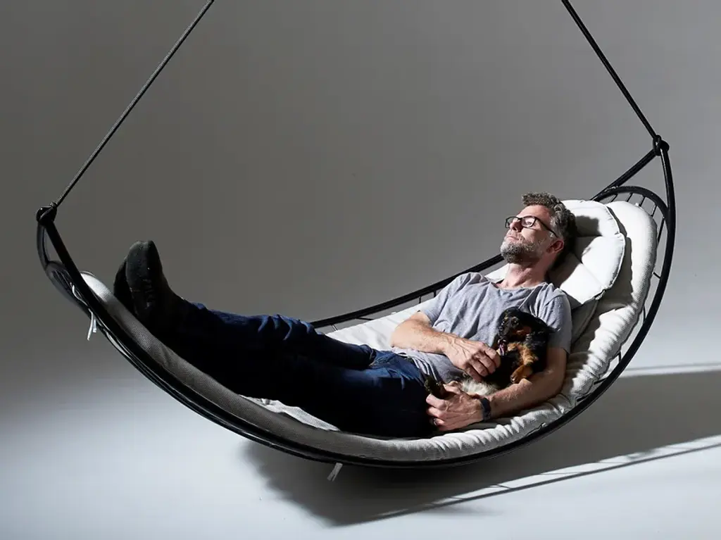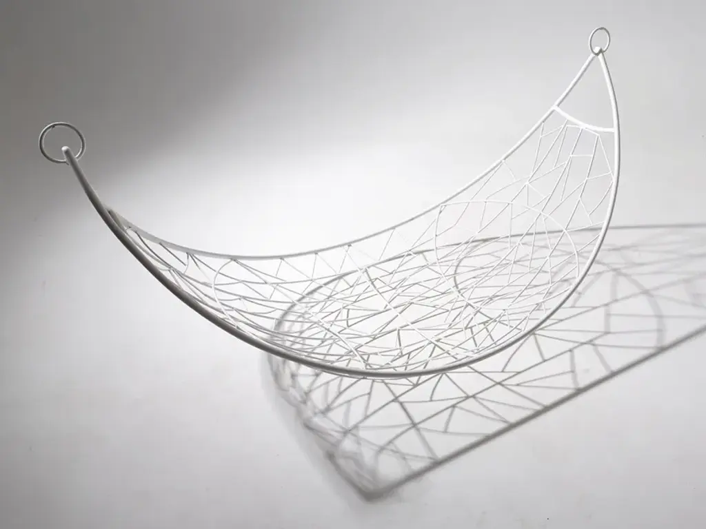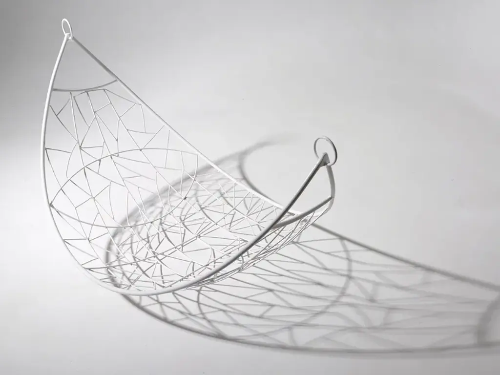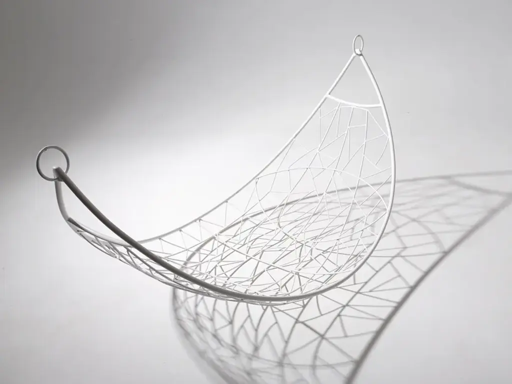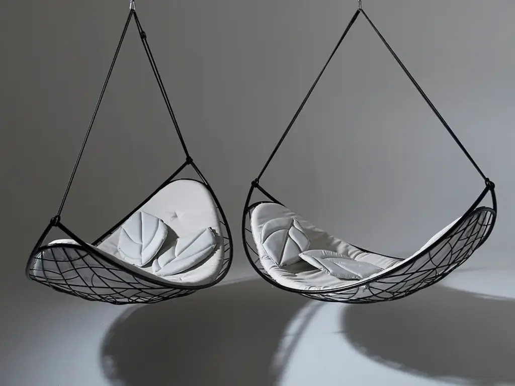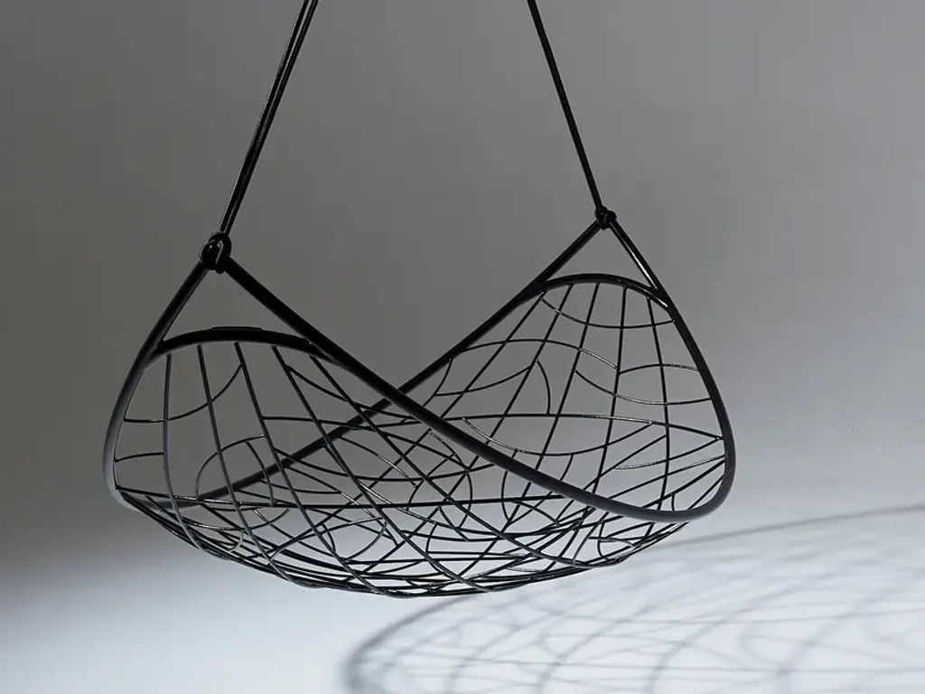 The MELON hanging lounger's organic shape is reminiscent of a slice of fruit like a melon. It is inspired by a hammock – but with its structured hard frame it will not fold in and is thus hugely comfortable. It is comfortable with ample room to relax. They are spacious with room for two people. The melon allows you to face each other, which is great for conversation, or cuddle up next to each other.The pattern detail is inspired by the texture on melon skin, but also by natural textures like the patterns of the veins in leaves, tree branches intersecting, the patterns in dragonfly wings and cracked soil. The chair has been designed to be very comfortable and relaxing. Ideal for ‘chilling’, reading a book or just hanging out.MELON is also available on a base stand / with legs for the more grounded person. Each one is made by hand. The core frame is standard to ensure consistency in shape and comfort. Due to the variance of craftsmanship going into each chair, every piece has individualism and uniqueness in some of the pattern detailing. Stainless Steel recommended for humid, salty, high moisture, coastal regions – on request and at an additional charge Hanging mechanisms are supplied in standard lengths, ready for installation.Available on request:- colour options- information on hanging options and stands- cushion options, sold separatelyVery Durable | Beautiful | Modern | Minimal | Contemporary and unique | Made By Hand | Indoor & Outdoor | Maximum capacity 240 kgs / 530 lbs | Powder Coated | Made from Rust Treated Mild Steel | Made in South Africa1 Year Warranty-Products to be free from defects in material and workmanship for a period of one year from date of sale. Any product found to be defective within this time period may be returned to our factory, freight prepaid, with prior return authorization for repair or replacement.