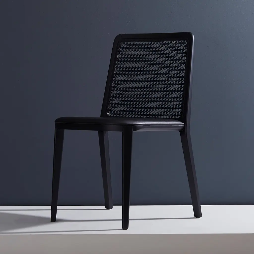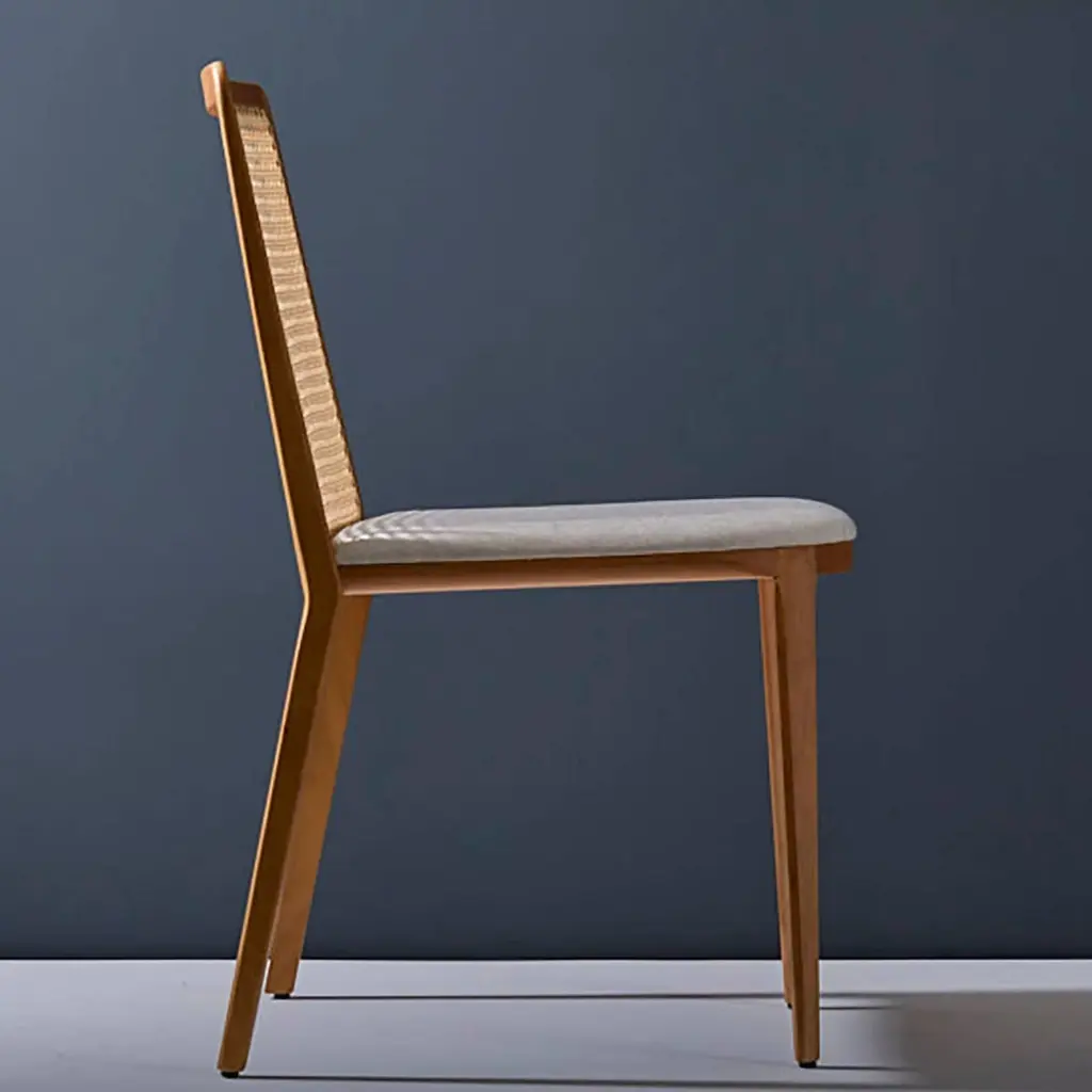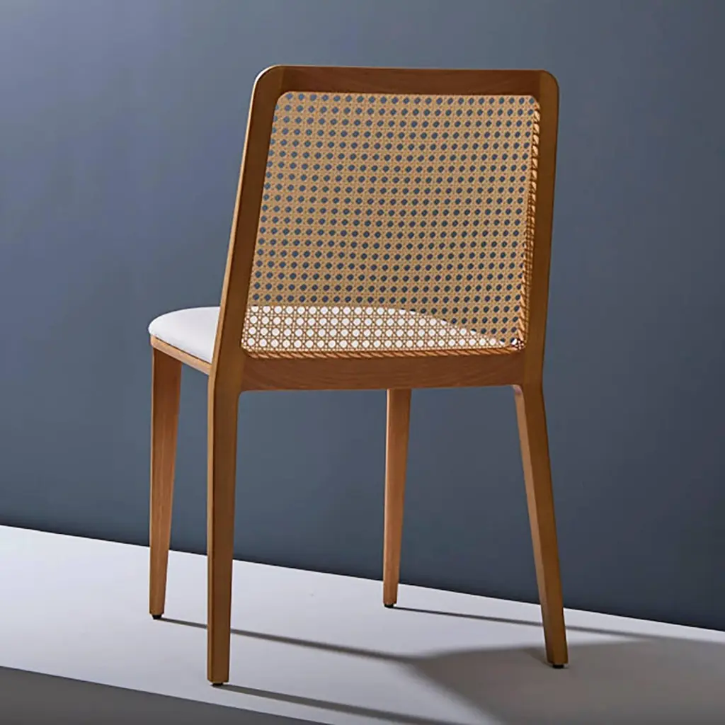 Minimal Style, Solid Wood Chair, Leather Or Textile Seating, Caning Backboard