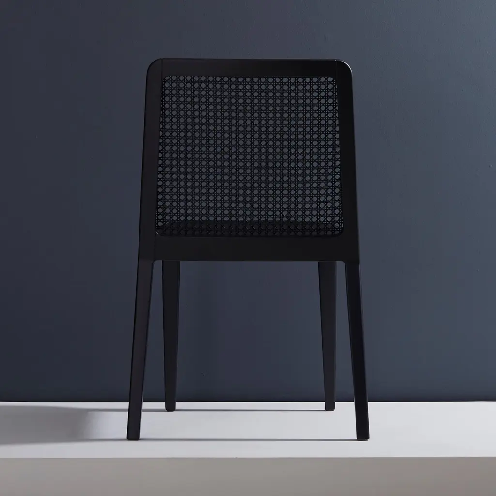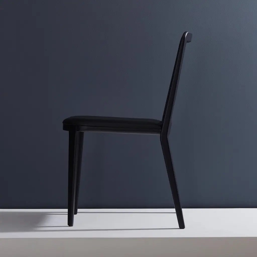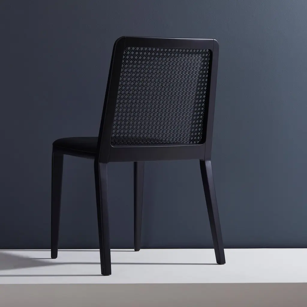 Minimal Style, Solid Wood Chair, Leather Or Textile Seating, Caning Backboard