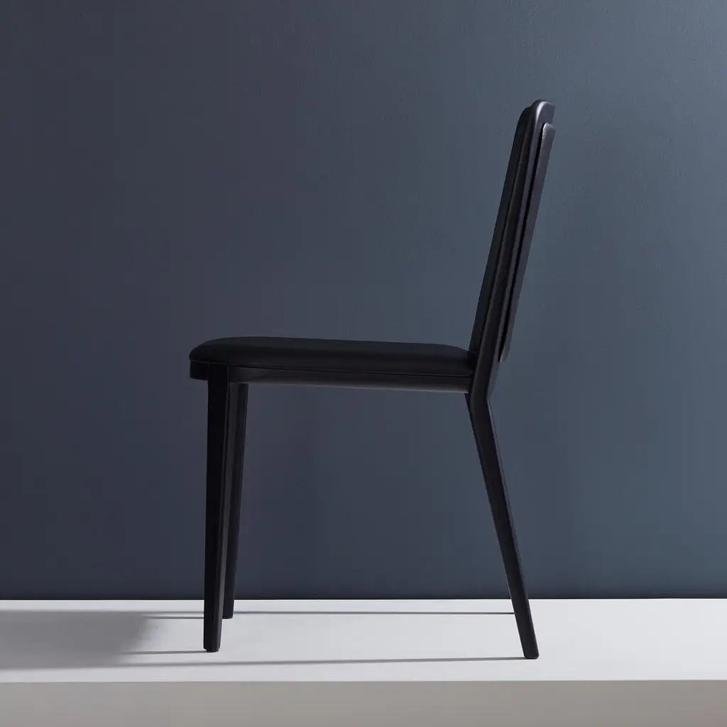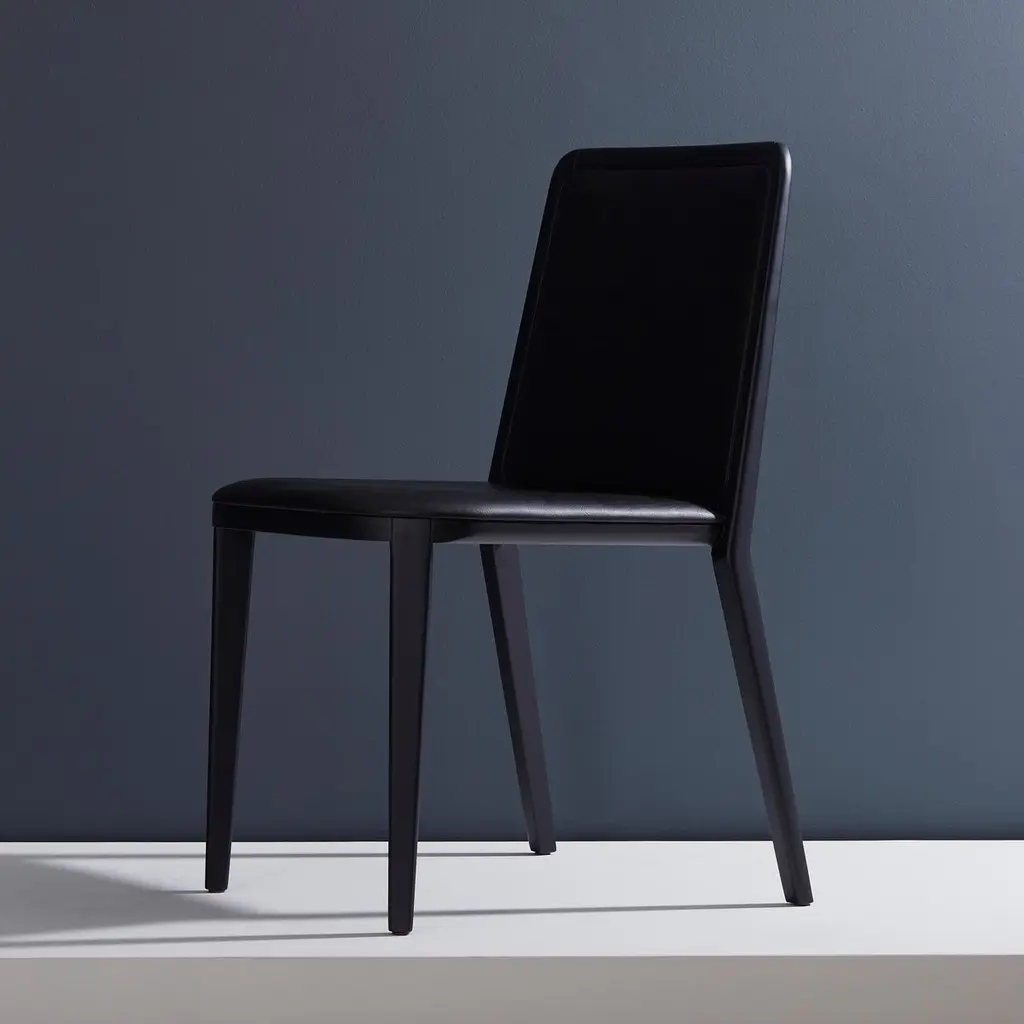 Minimal Style, Solid Wood Chair, Leather Seating, Upholstered Backboard