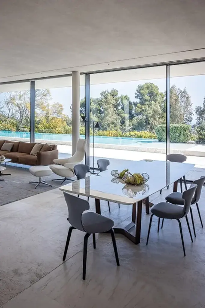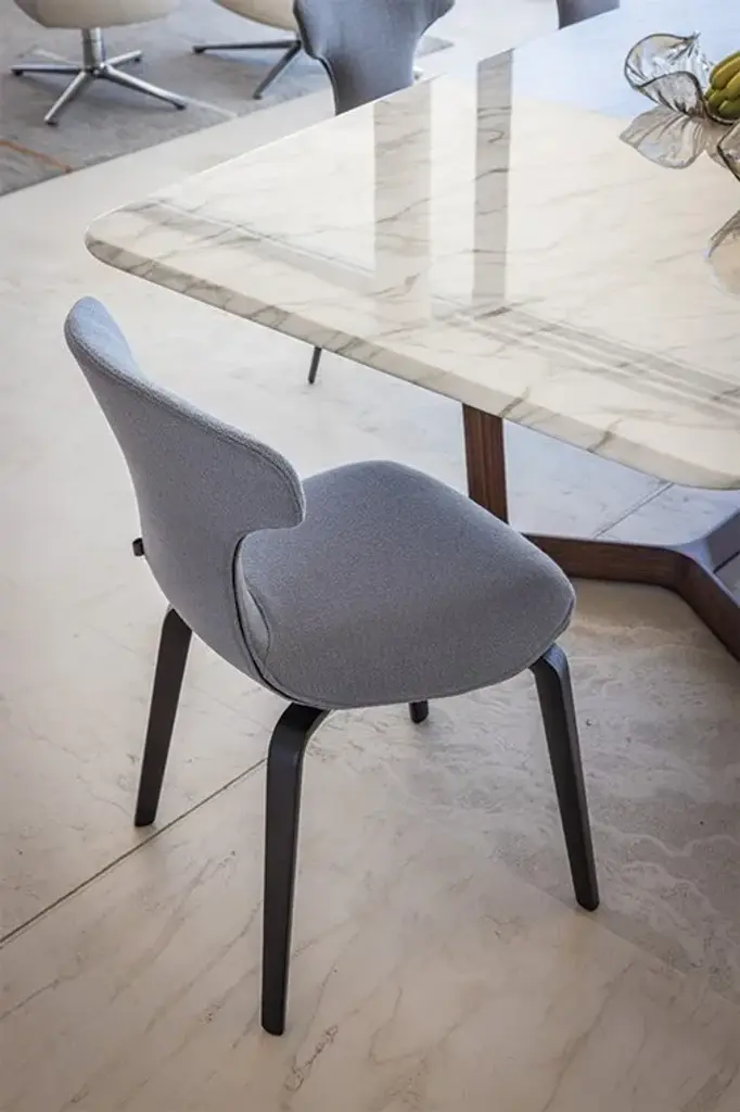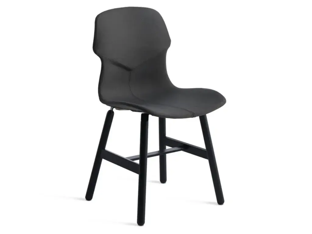 Formal lightness and a sensation of softness describe the new “extra-soft” table chair from the Montera collection, designed by Roberto Lazzeroni. In a perfect balance between comfort and design, Montera Mas increases the padding of the shell, respecting the original organic and sinuous lines and the characteristic wings of the backrest, which offers the body enveloping support.Montera Mas is available with upholstery in Pelle Frau® leather or removable fabric. The padded chair can come with a two-tone leather upholstery: one on the outside of the backrest and one on the inside of the seat.The solid ash wood base typical of the Montera chair joins a four-legged tubular metal base with a conical section that is available in two finishes: burnished or lacquered titanium. Tapered legs make Montera Mas even lighter and more versatile in its uses, from residential spaces to hospitality.Capable of projecting a strong decorative presence, Montera Mas interacts elegantly and personally with the most diverse styles, also through colour.The Montera series designed by Roberto Lazzeroni has a formal lightness that expresses the sensory charm of its materials: the raw cut processing exalts the tactility of the saddle-leather and leather which, combined together, complement each other perfectly; the light stitching on the backrest forms a smile. Montera is a chair, an armchair, a stool of two different heights, a column stool and a stackable chair.