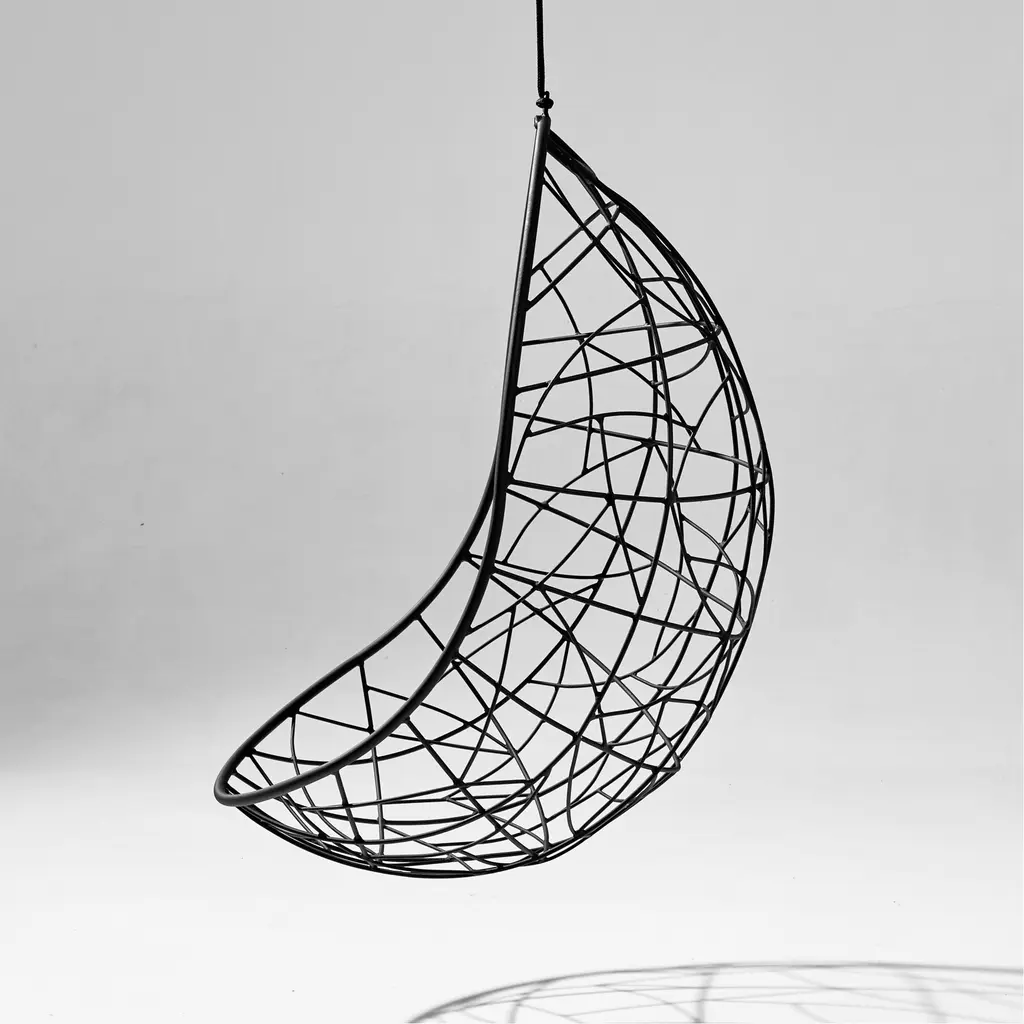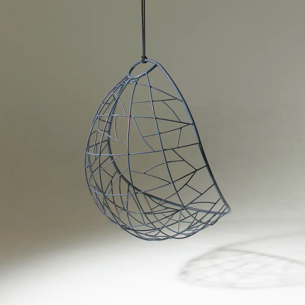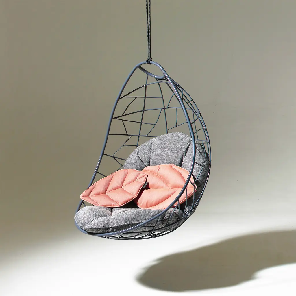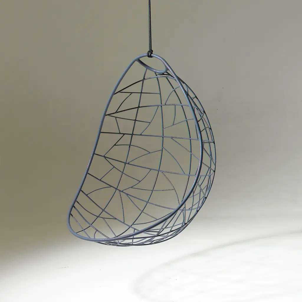 Relax in complete comfort and enhance your home’s décor at the same time with Nest Egg. Part of Studio Stirling’s lounge chair collection, this design optimizes comfort with a cocoon-like shape. The chair references the organic forms of bird nests and the intertwined patterns found anywhere in the nature, from tree branches and leaves to dragonfly wings. Made by hand in South Africa, the Nest Egg lounge chair features a powder-coated mils steel frame and a matching hanging mechanism. The manual, artisanal crafting technique makes each chair one of a kind, as the frame patterns may vary subtly. Suitable for both indoor and outdoor use, the chair can be easily installed in a room or on a terrace or garden.